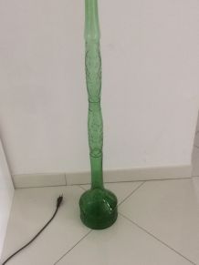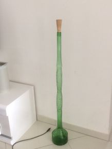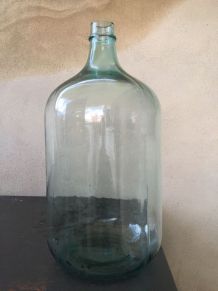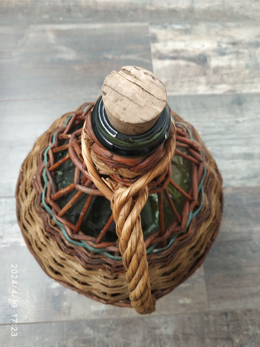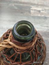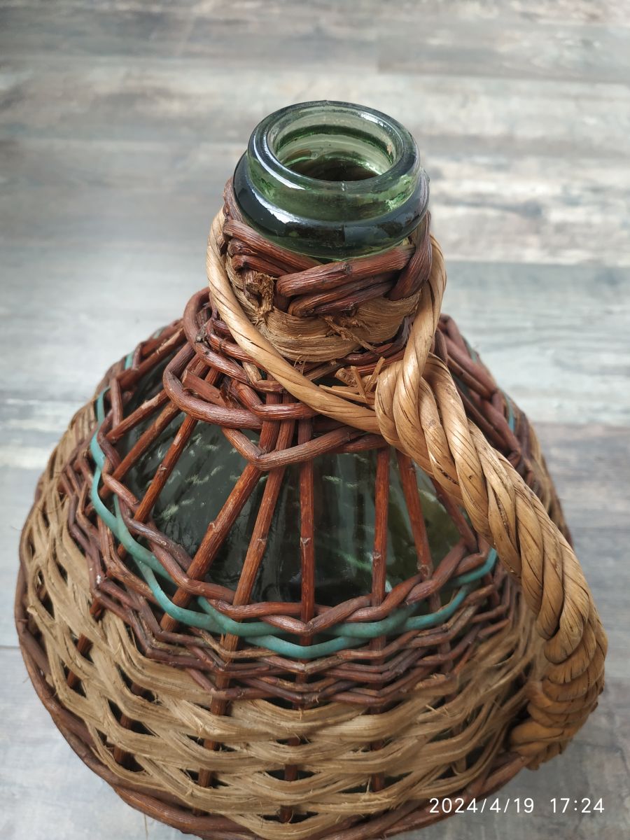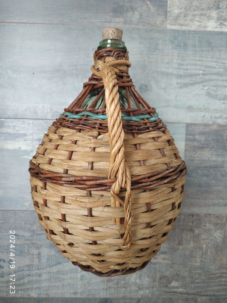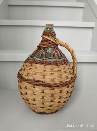 Bonbonne en verre épais dans son étui d'osier tressé.