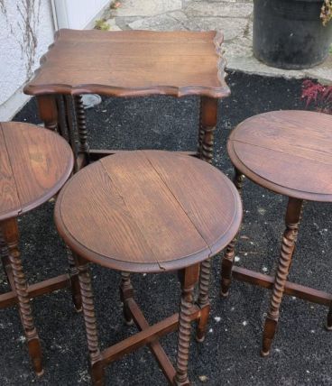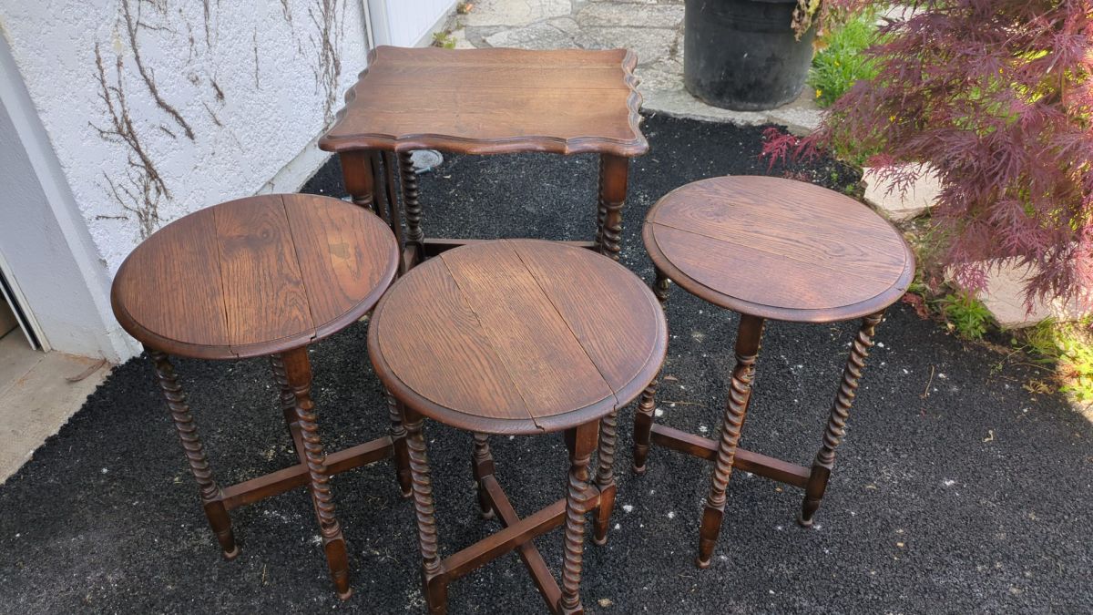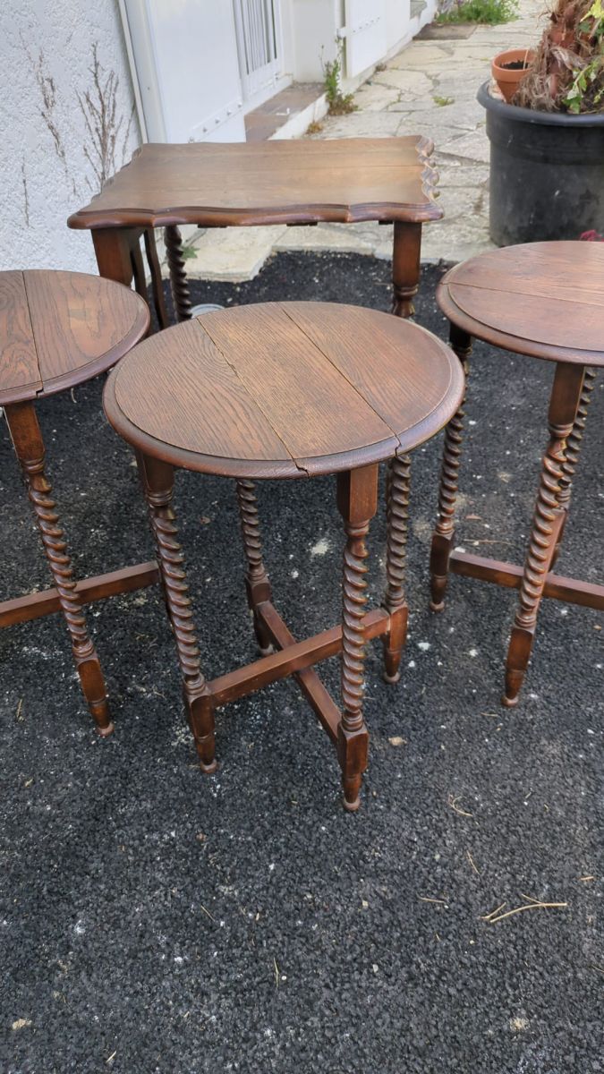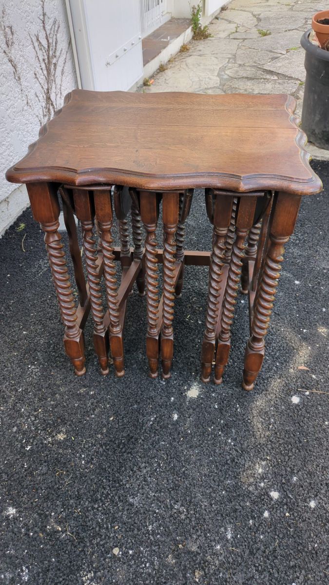 Une Table gigogne accueillant 3 tables en bois.