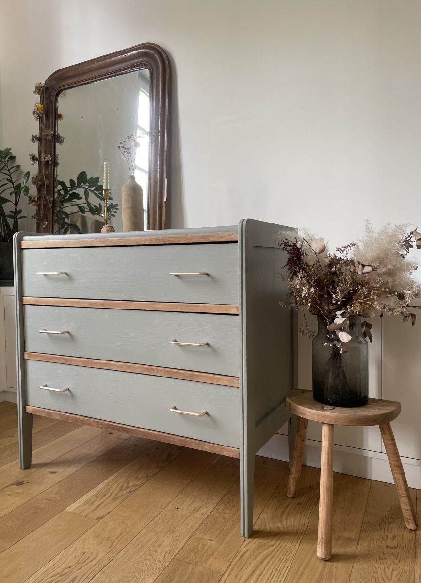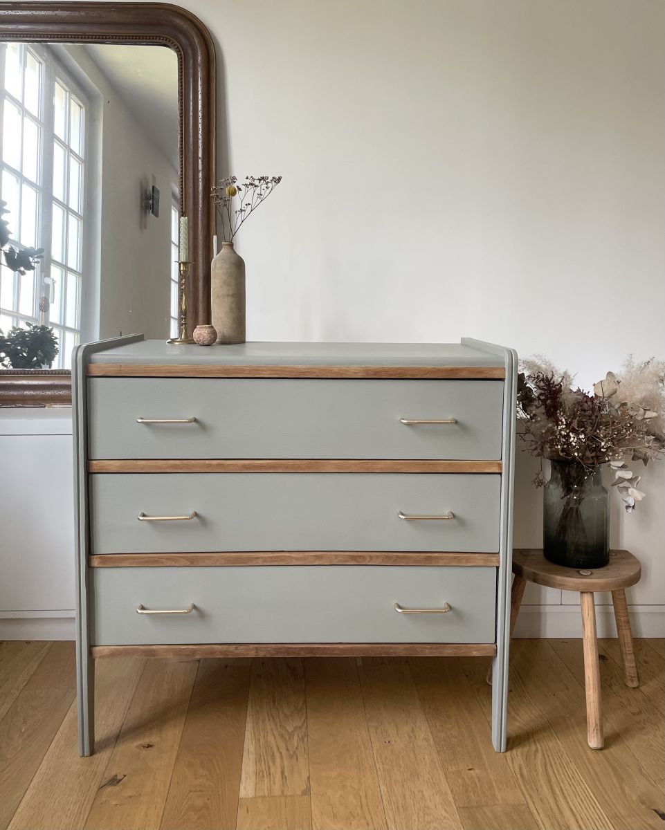 Elle a été mise en beauté avec la douce nuance "Gris chaud" de chez Ressource.