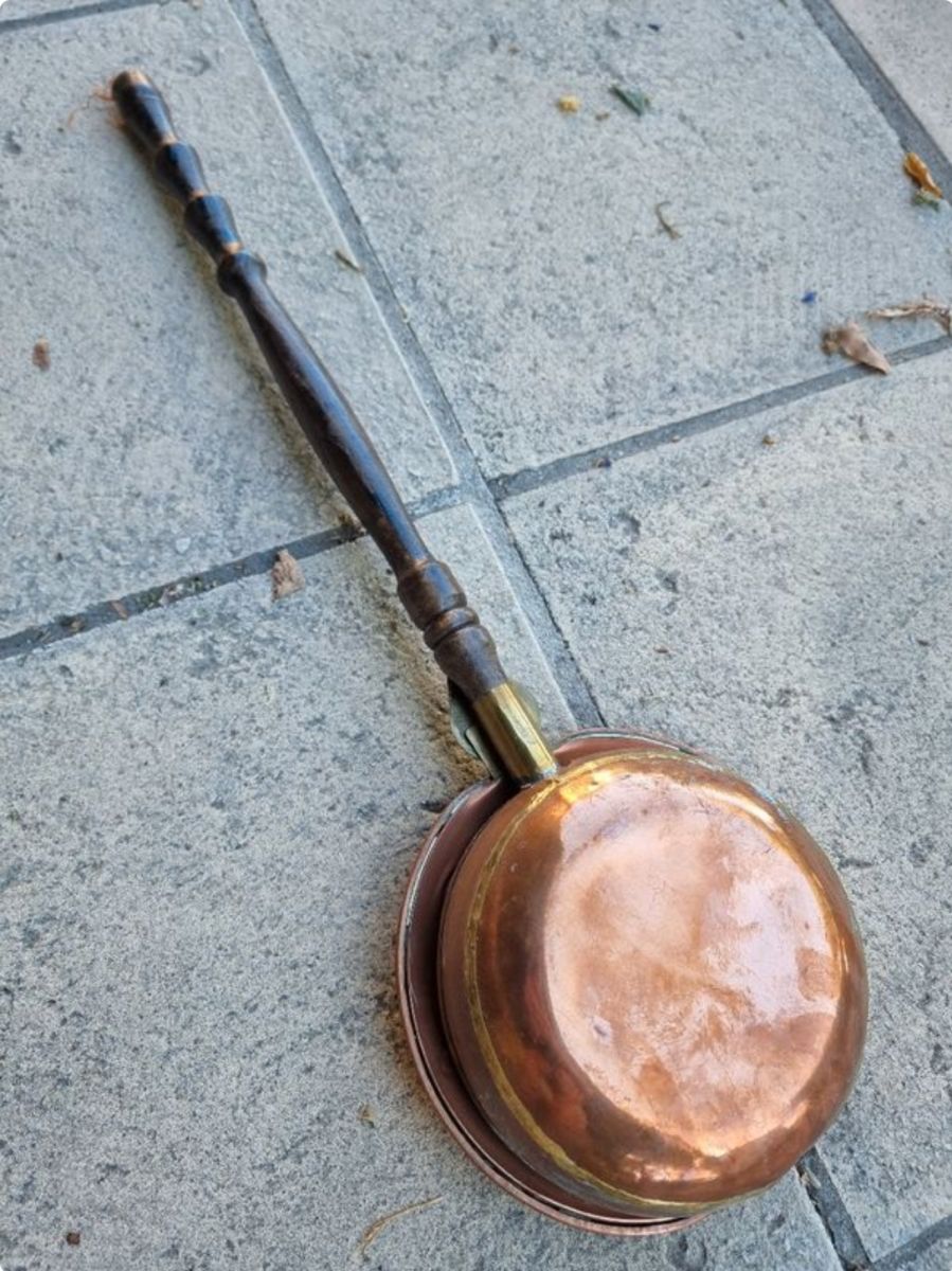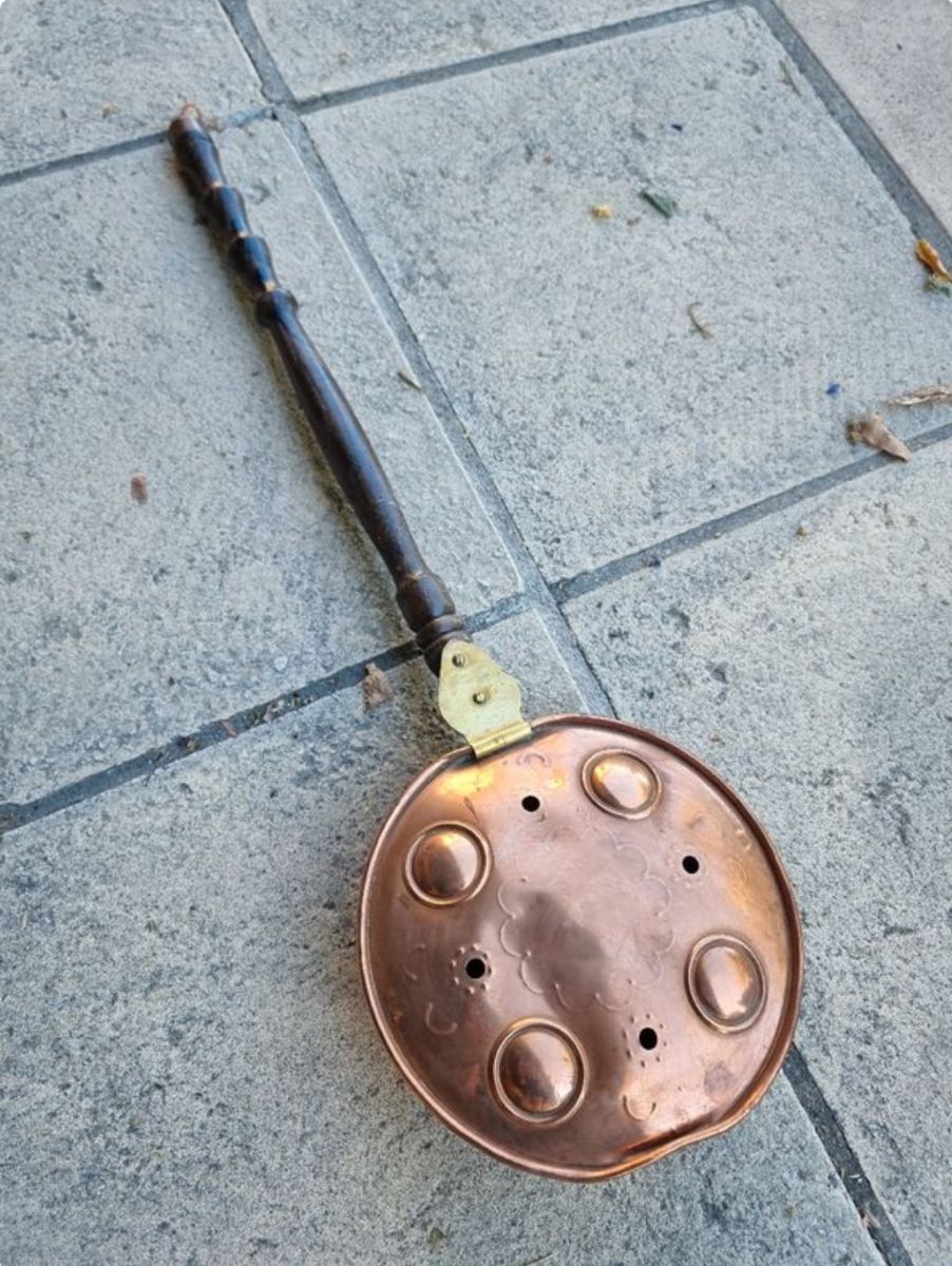 Ancienne bassinoire chaufferette en cuivre