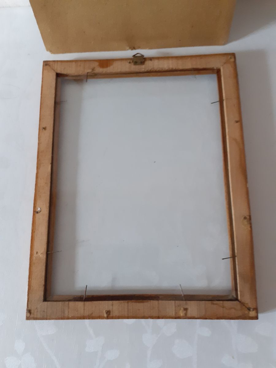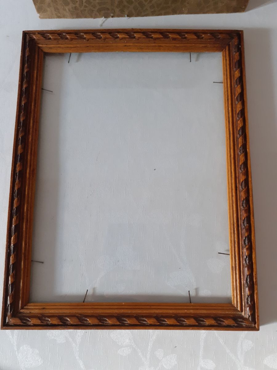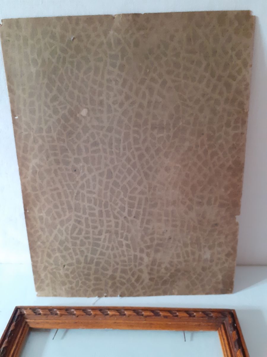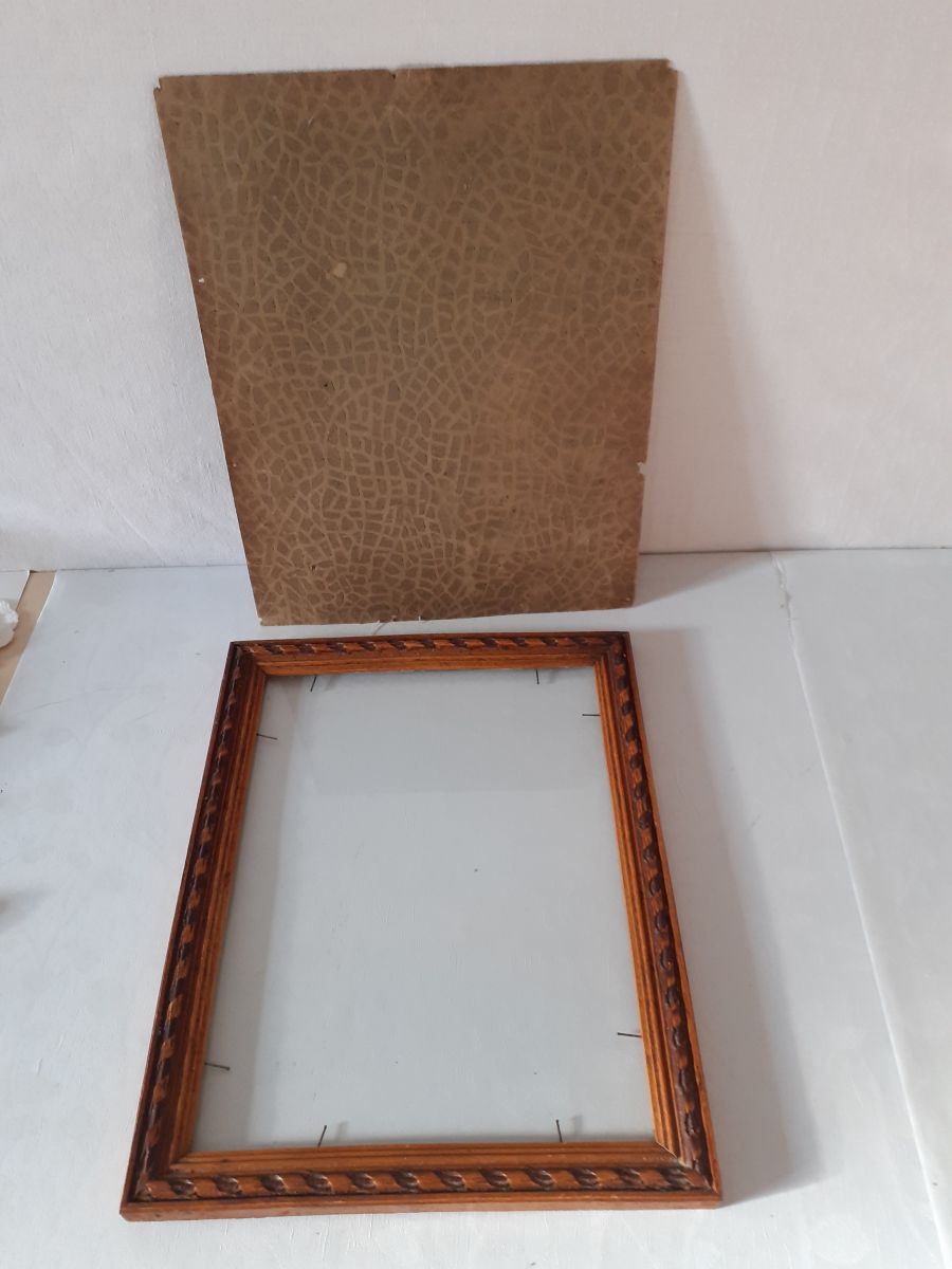 Cadre en bois avec une vitre & papier en carton d'origine pour le mettre au dos du cadre abîmé tâcher par le temps