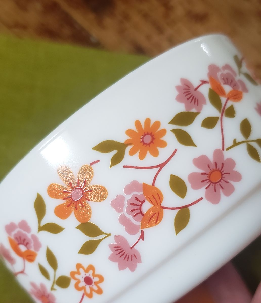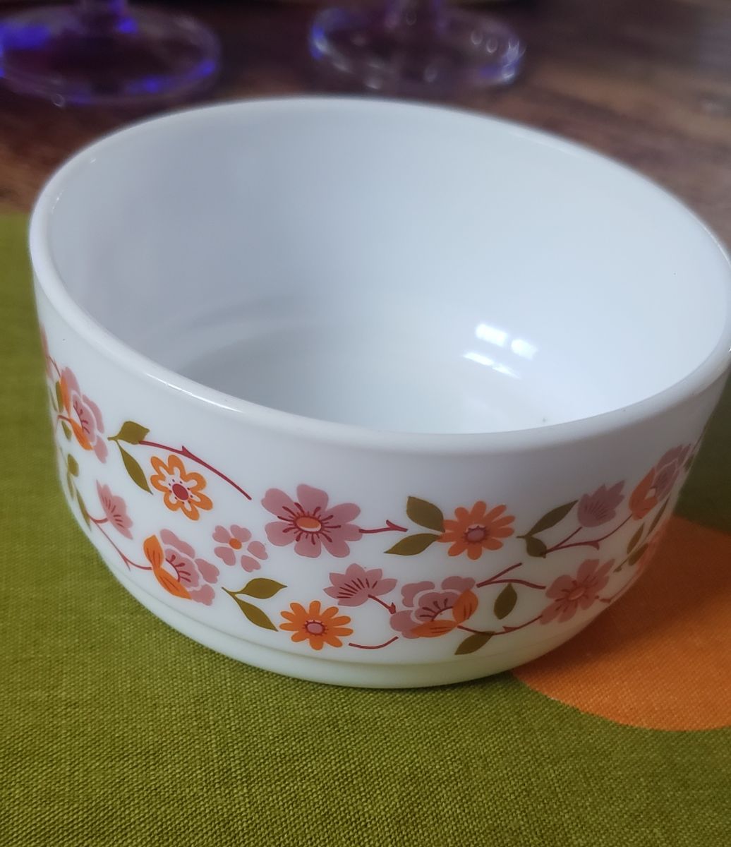 Bol/coupelle en opale et verre trempé avec motif fleur d'oranger et de rose.