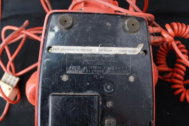 Ce téléphone vintage C-SELF Thomson orange est dans un état correct, mais il présente quelques défauts visibles. Il n'a pas été testé et ne fonctionne pas. De plus, une date est inscrite dessus (04/01/82) et il n'a pas été nettoyé. Malgré ces petits défauts, ce téléphone vintage reste tout de même un objet de collection intéressant.
