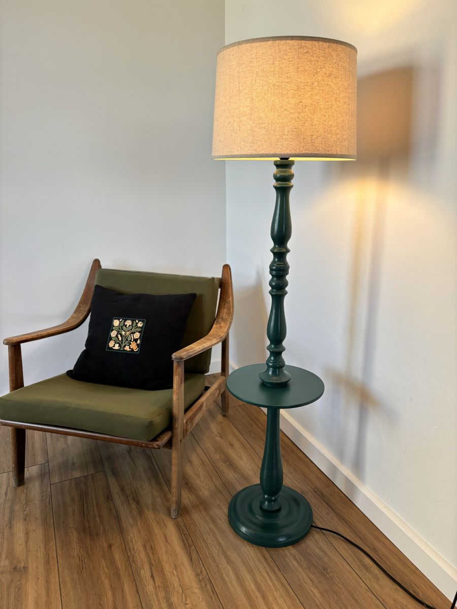 Lampadaire luminaire pied bois torsadé tourné vintage abat j