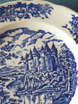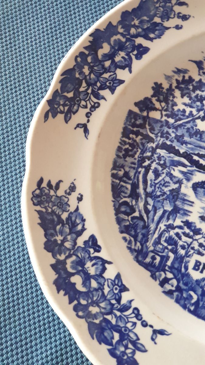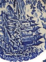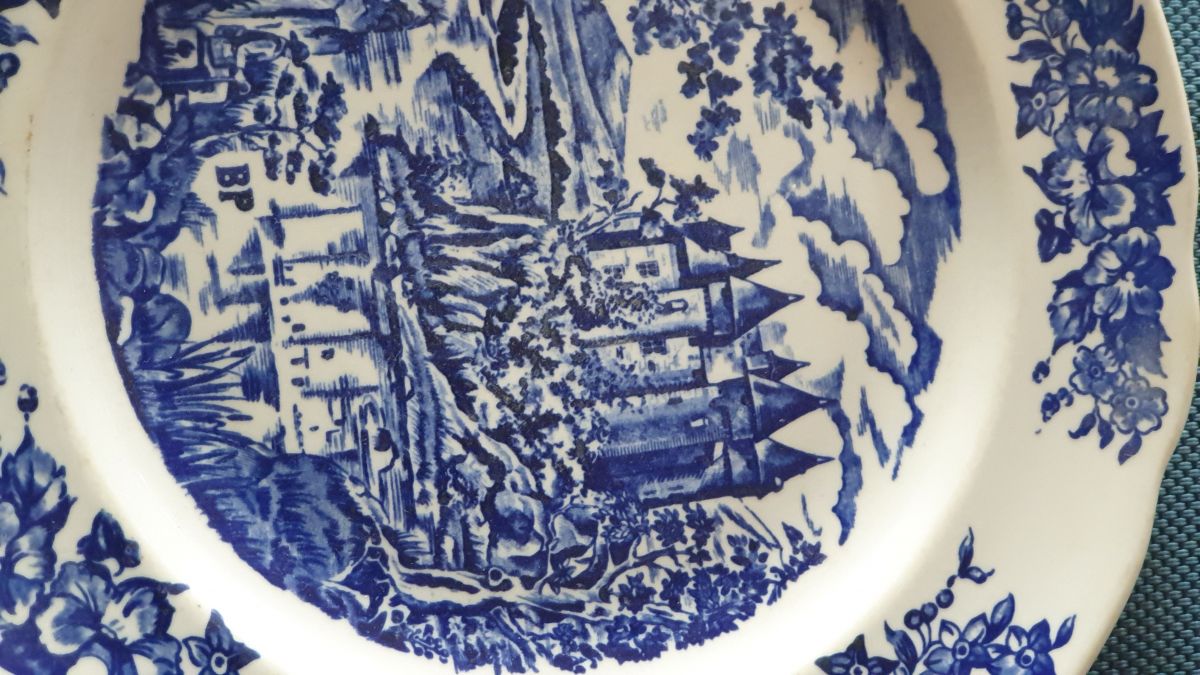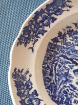 Assiette publicitaire BP à décor floral bleu style anglais.