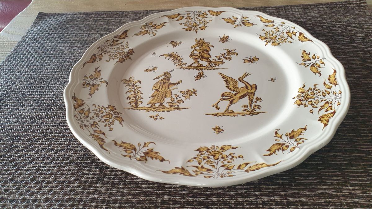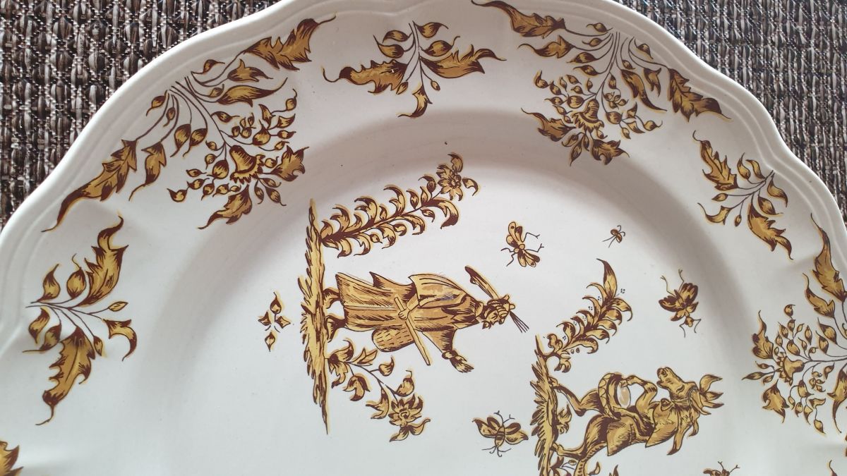 Décor coloris bronze avec personnage et animaux fantasmagoriques . Il s'agit d'une production du XIX eme, début du XX eme siécle. Coloris qui sublimera une table de fête ! Diametre 25,5cm ,Hauteur 2,5 cm