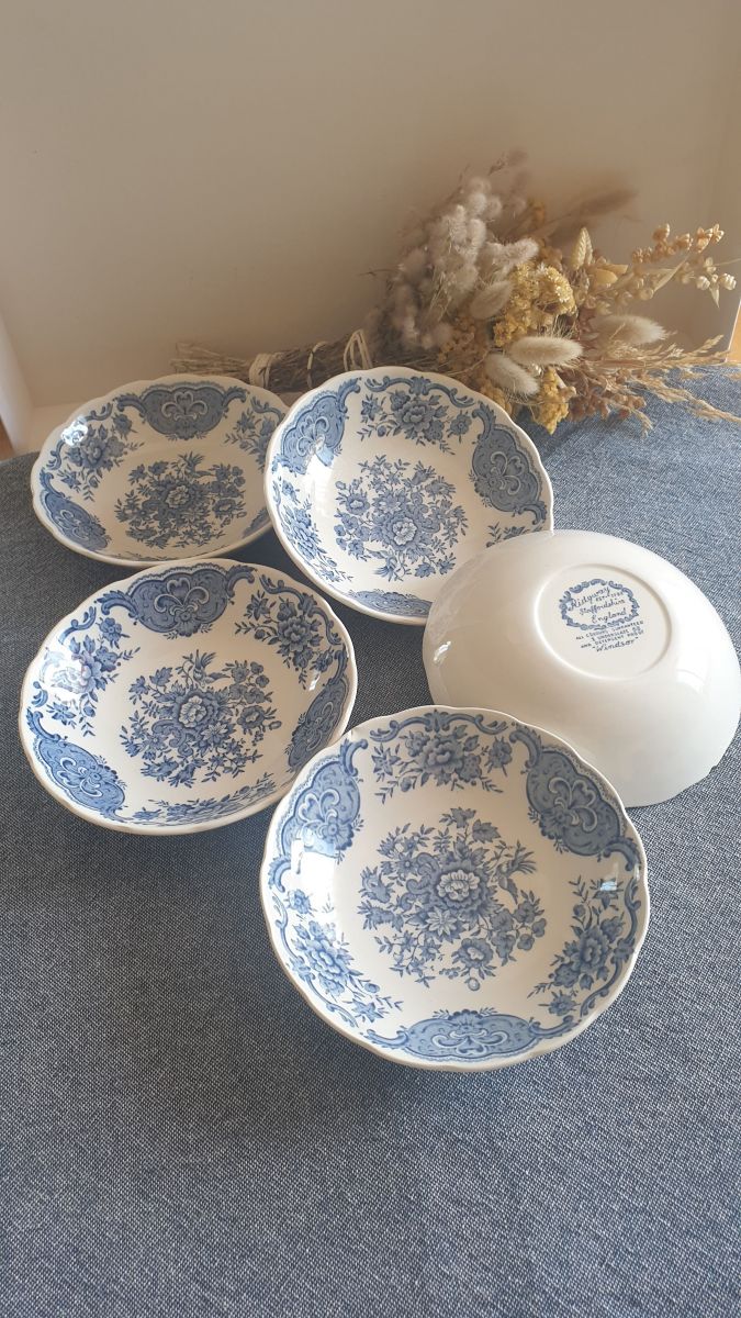 Ensemble de 5 coupelles de la manufacture anglaise Ridgway Staffordshine modèle "Windsor" au décor floral bleu roy des années 1980