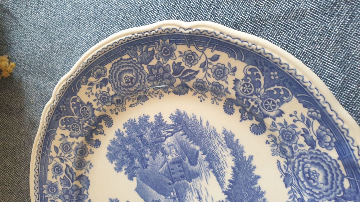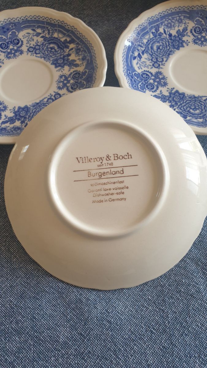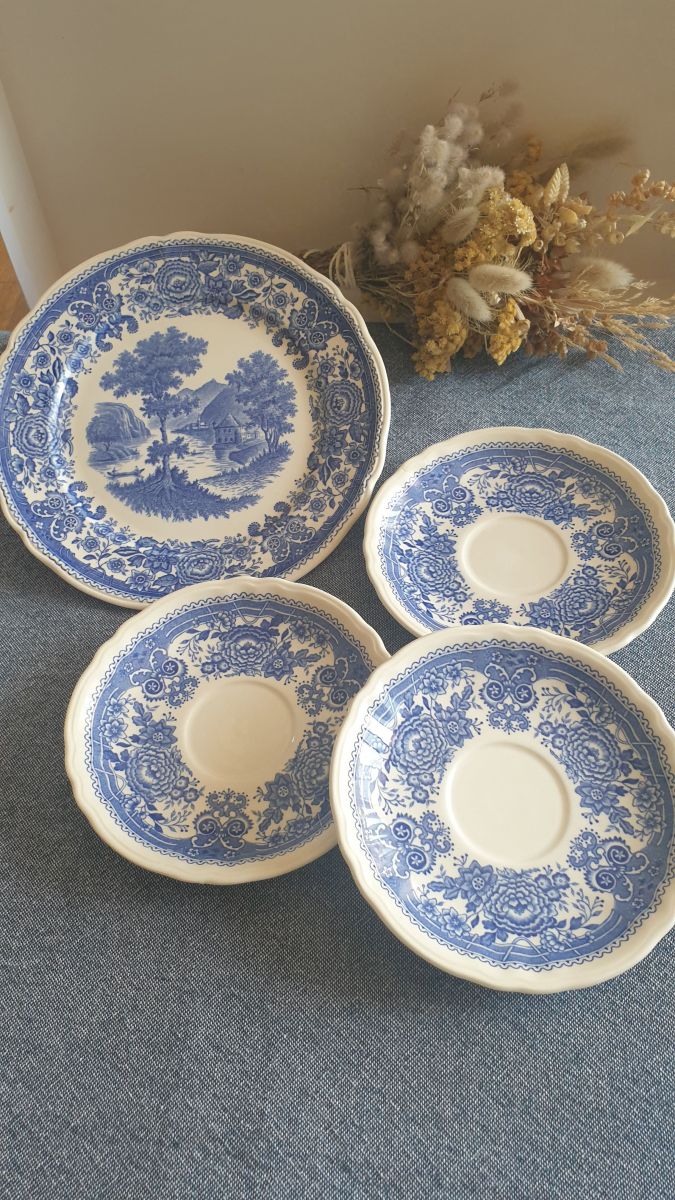 Manufacture Villeroy et Boch modèle "Burgenland" bleu , paysages animés en camaïeu de bleu.