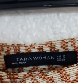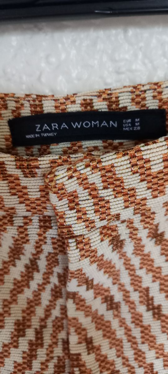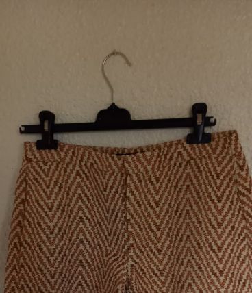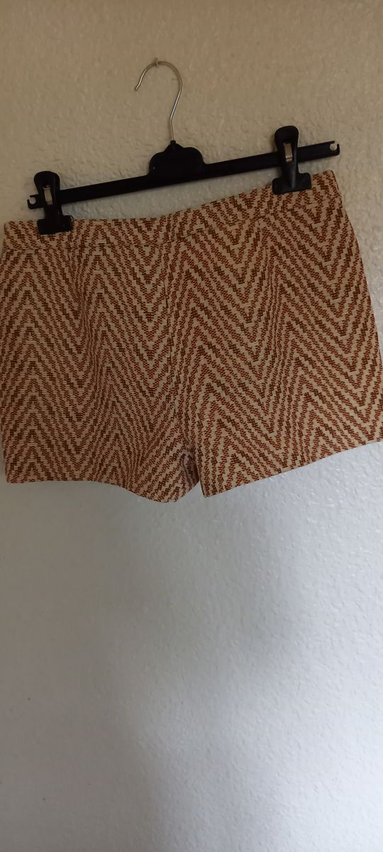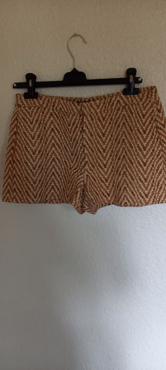 Short Zara façon tapisserie fond beige chevron marron ocre