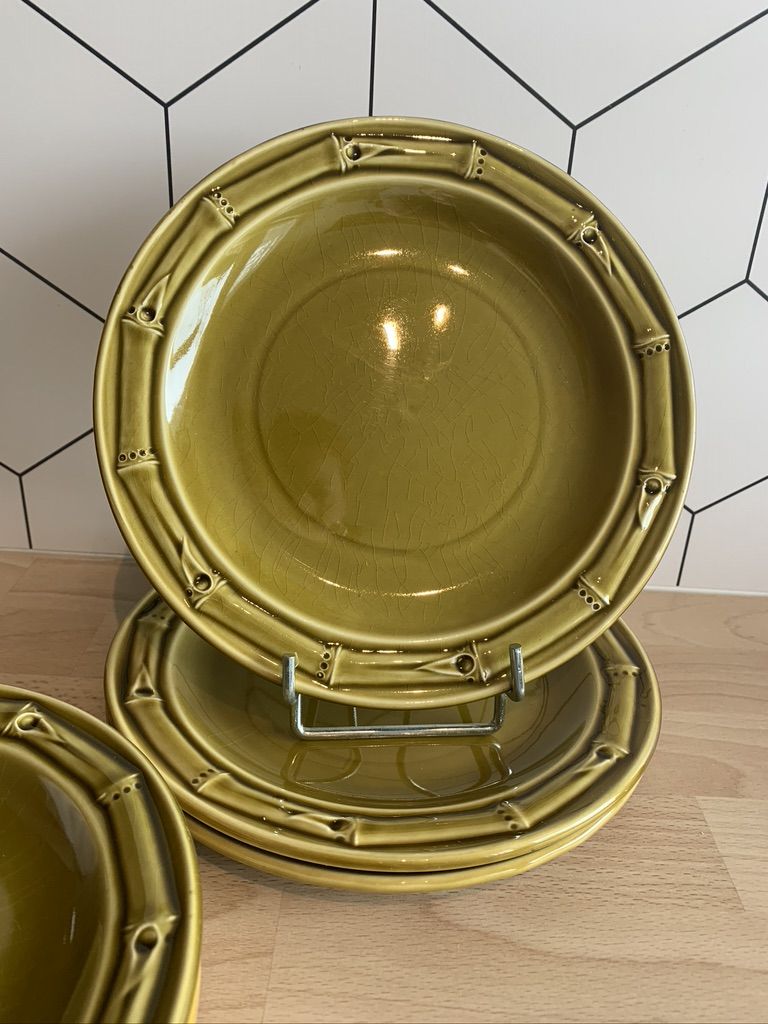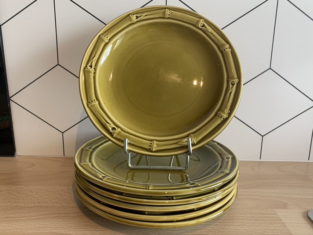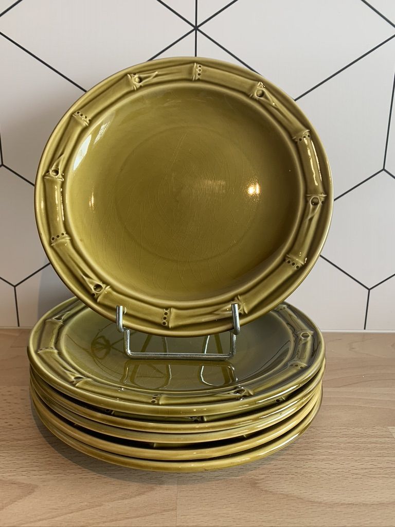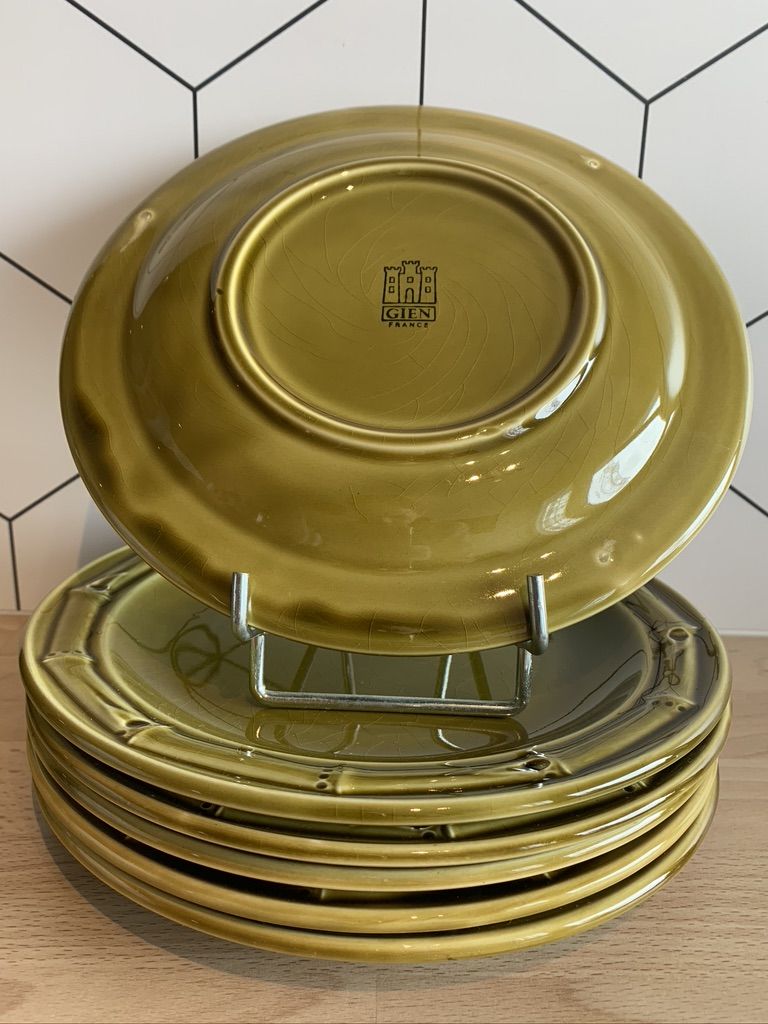 6 assiettes à dessert kaki - décor Bambou - GIEN