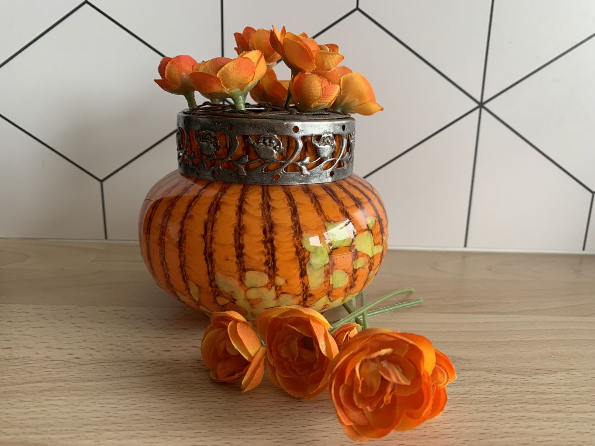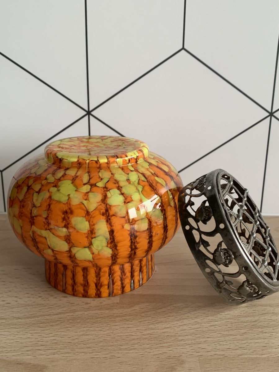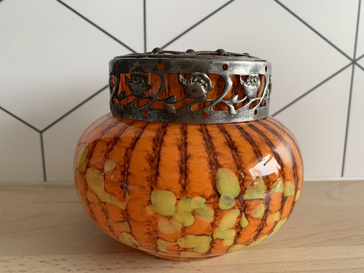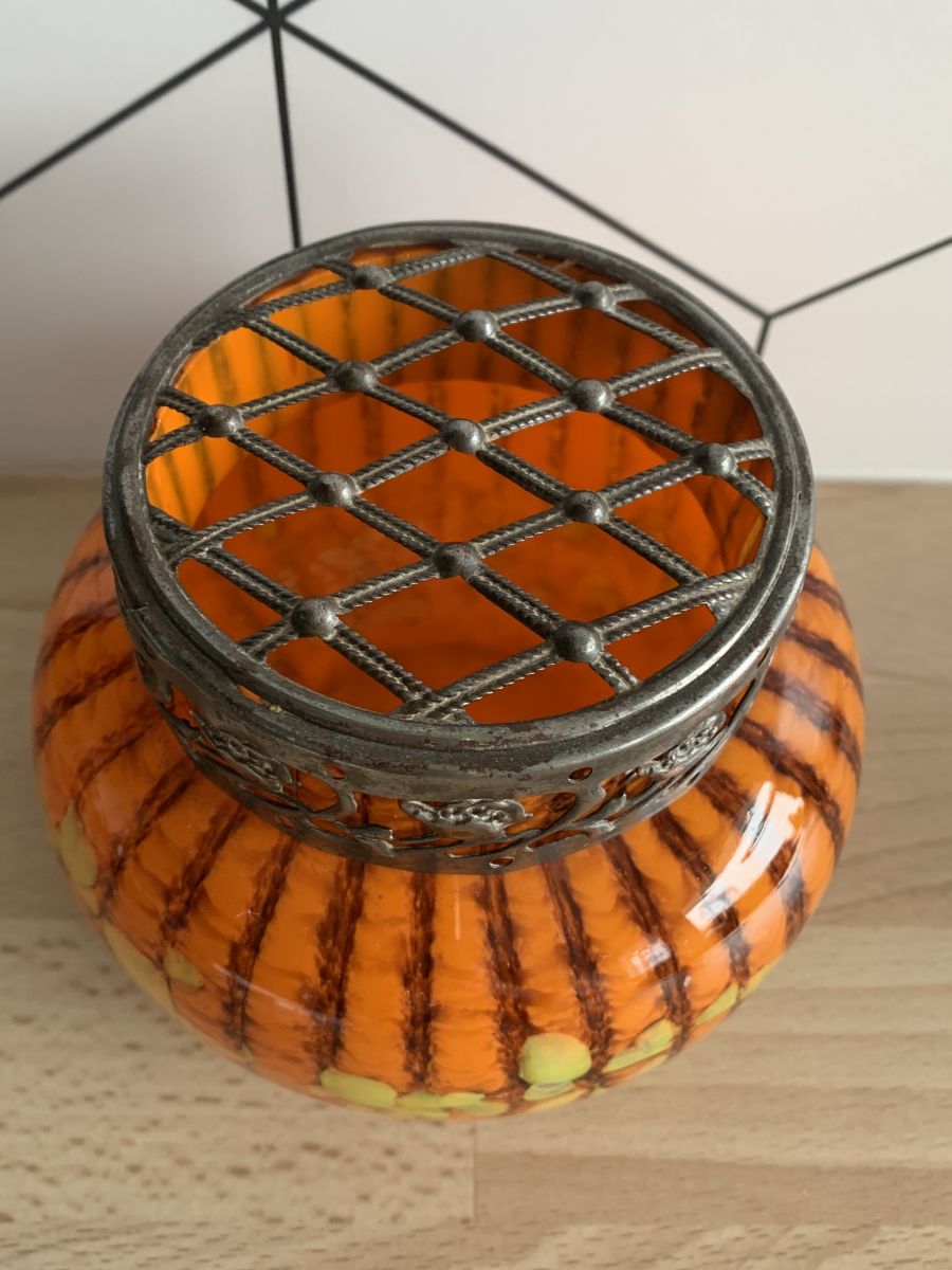 Ce pique-fleurs Art déco des années 1920, réalisé Franz Welz, soufflé à la main en verre de Bohème, est une pièce décorative précieuse et unique.