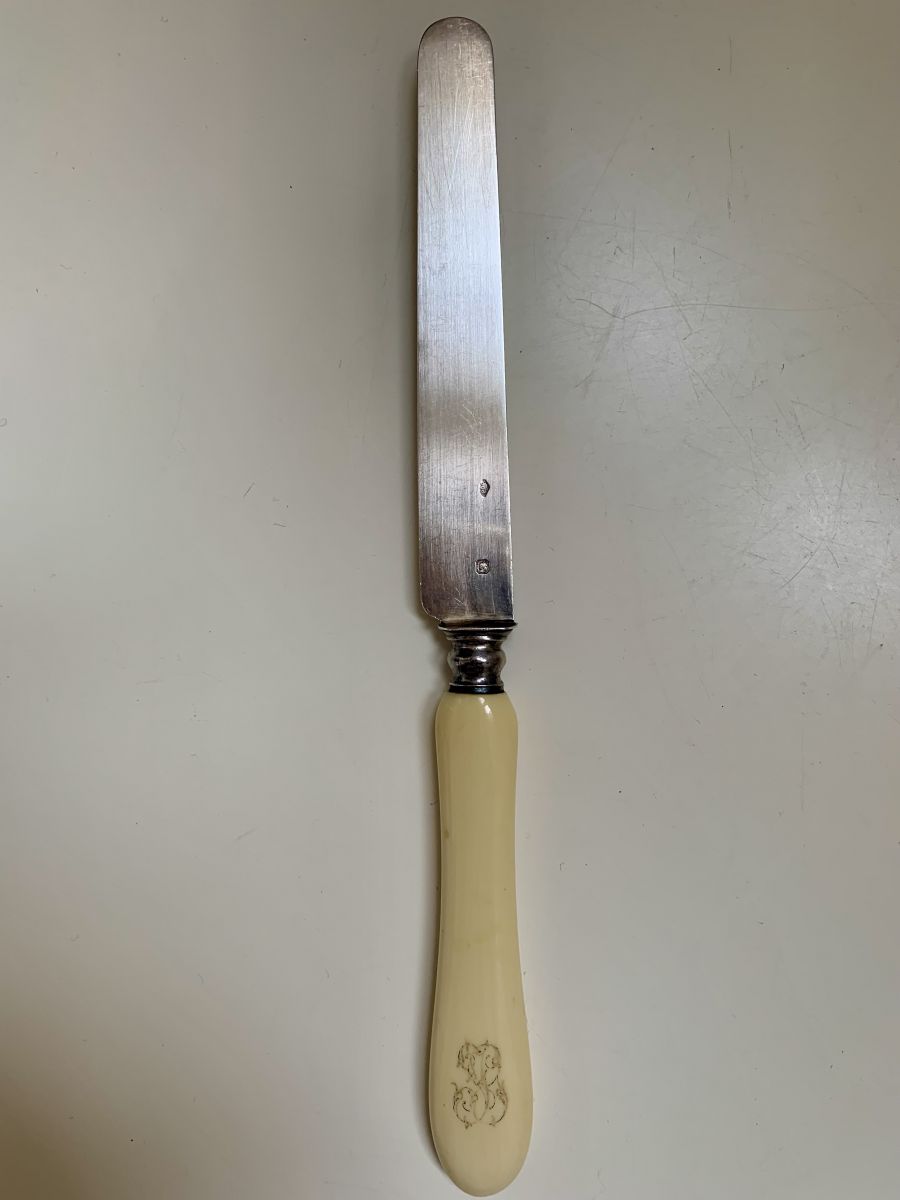 Fabriqués au début du 20e siècle, ces couteaux présentent des lames en argent portant le poinçon de l'orfèvre JDR et le poinçon Minèrve.