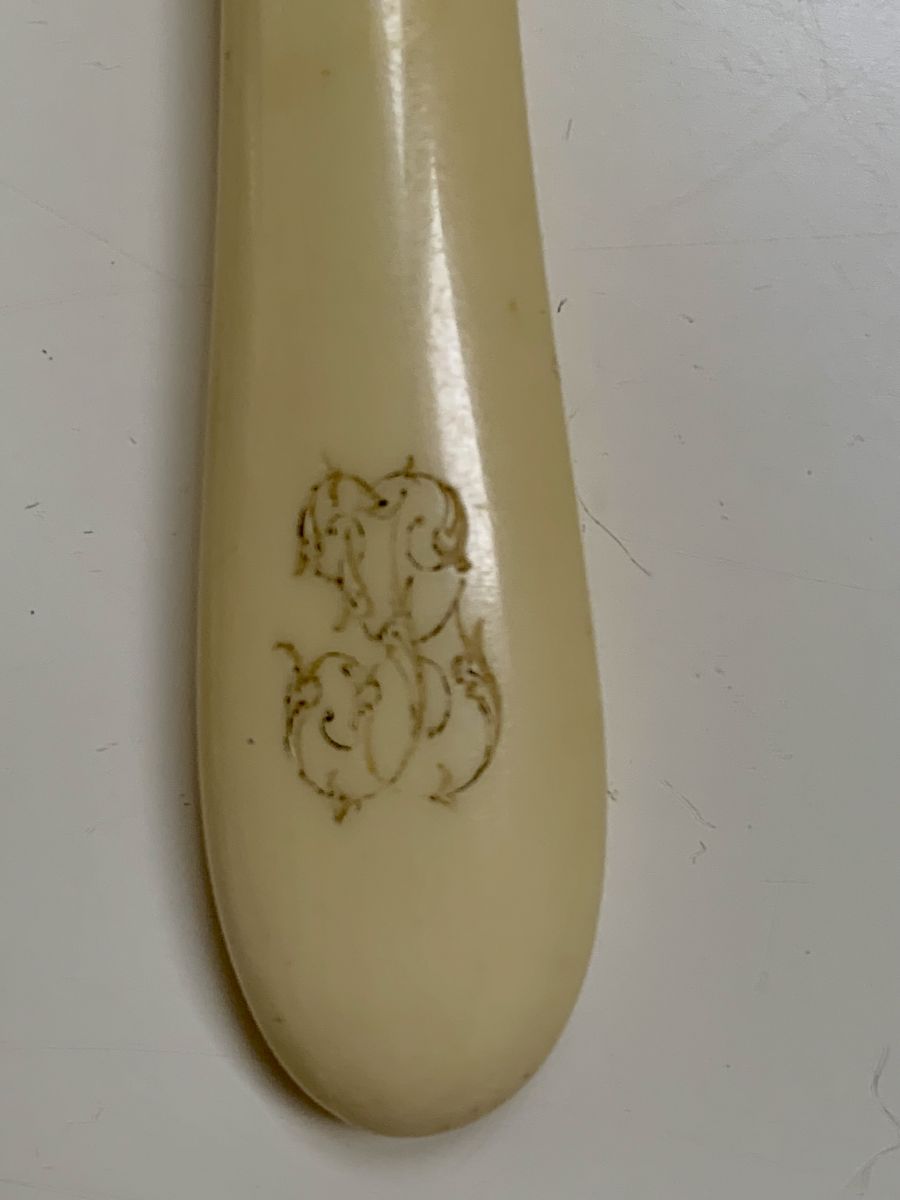 Les manches en os sont ornés du monogramme JG. A noter que quelques manches sont légèrement fissurés.