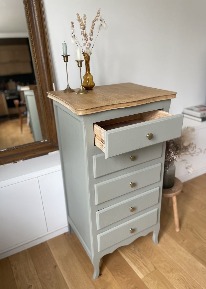 Il a été mis en beauté avec la douce nuance "Gris chaud" de chez Ressource.