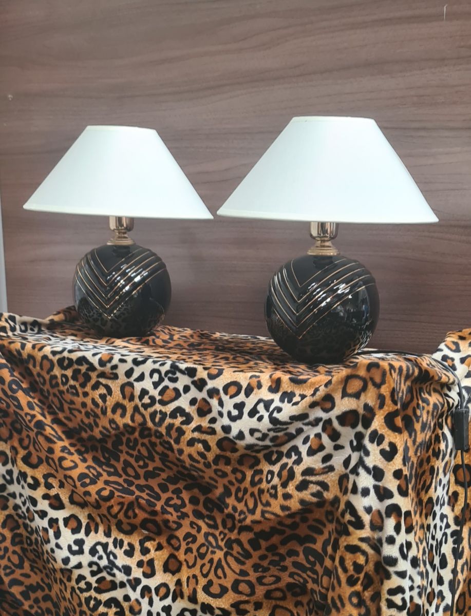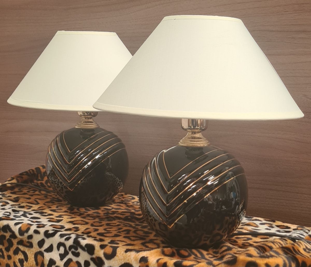 paire de lampe chevet ceramique noir a liseret or venisé ,1