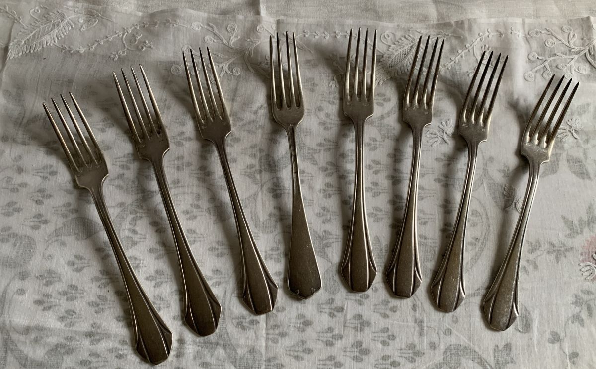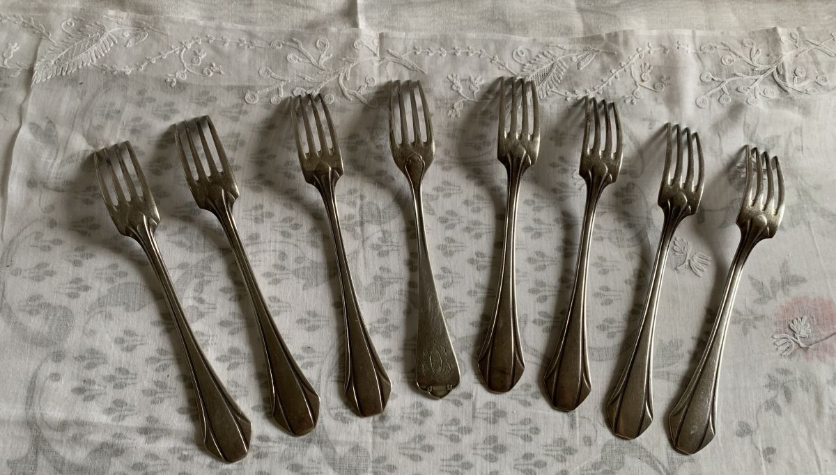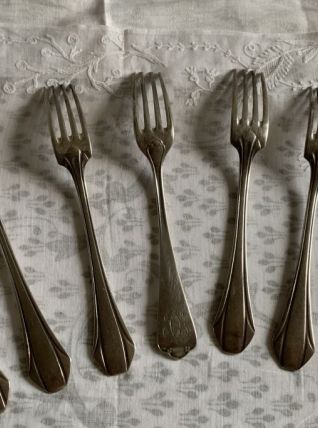 Lot de 8 fourchettes en metal argenté avec poinçons