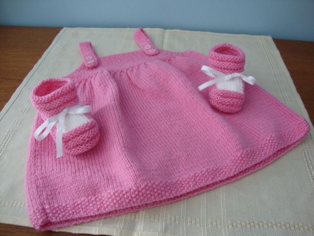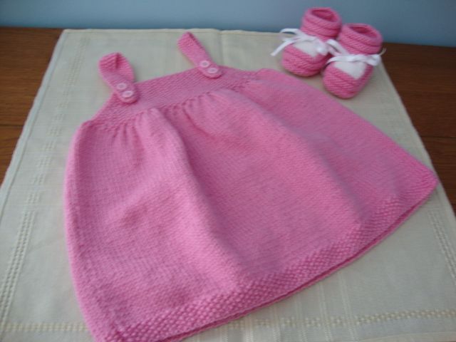 Robe et chaussons assortis bébé 3/ mois tricotés main
