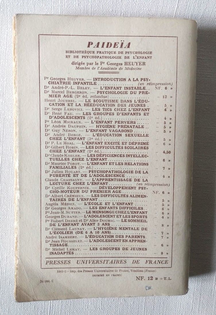 Psychologie du premier âge par Dr M Bergeron. PUF 1961.