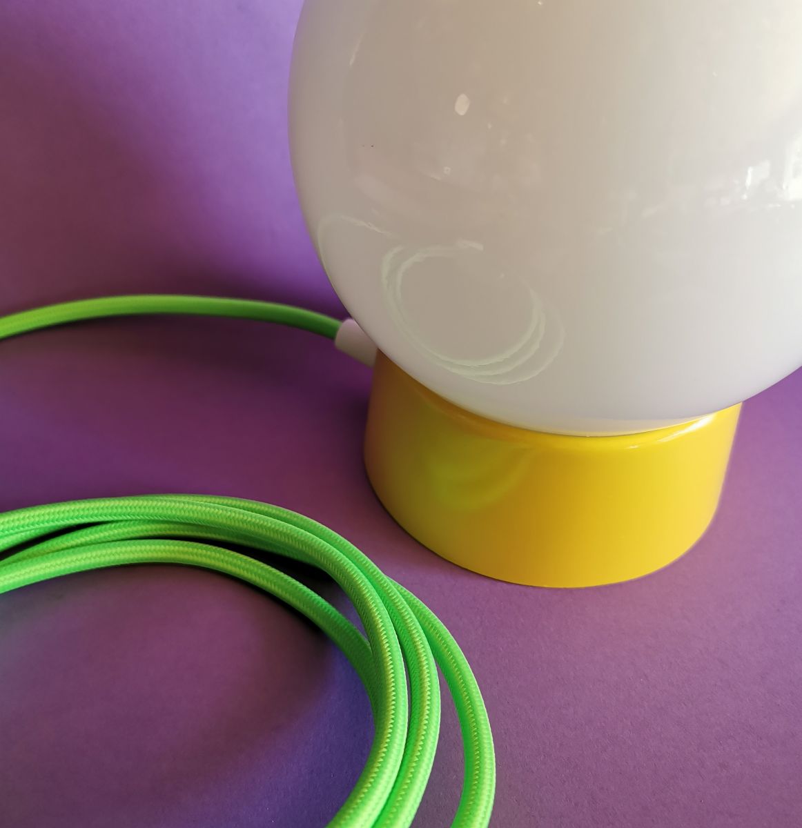 Pour donner du peps à cette lampe, j'ai choisi un câble textile vert fluo avec interrupteur et prise blancs.