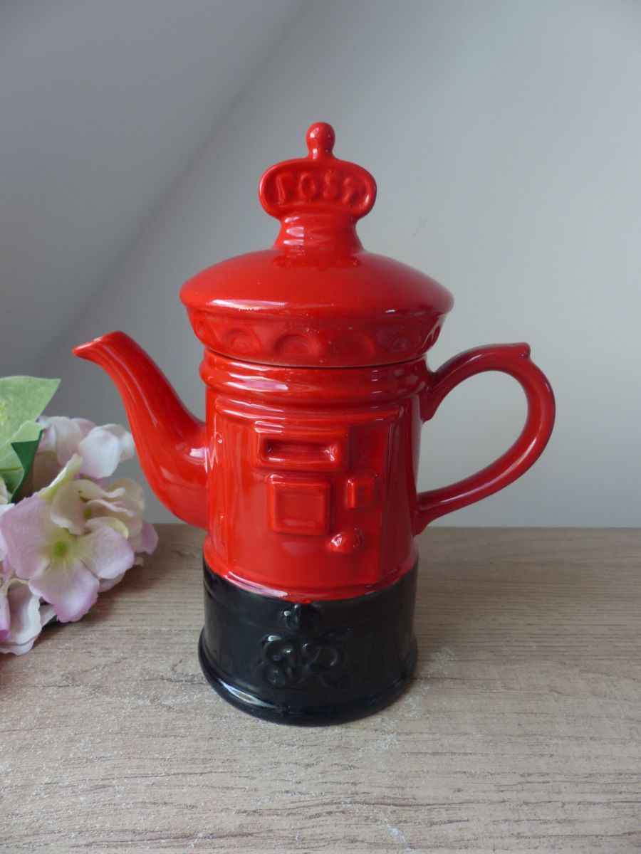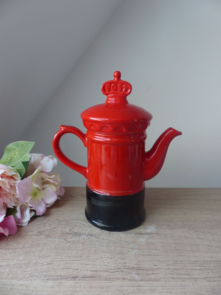 Il s'agit d'une théière en forme de boîte aux lettres anglaise.