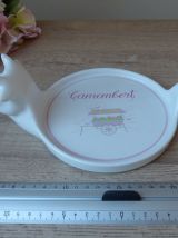 Il y a l'inscription "Camembert" en lettres roses sur le plat.
