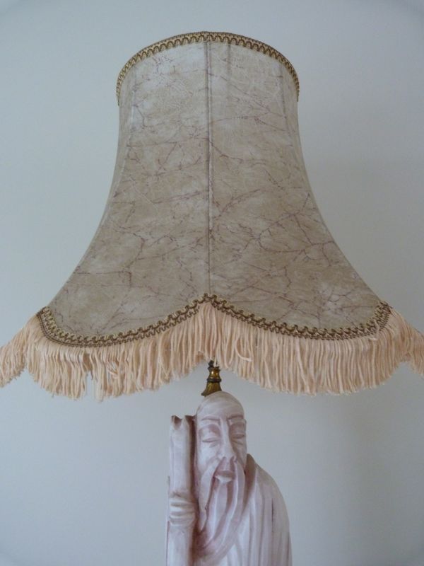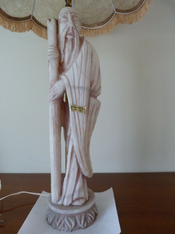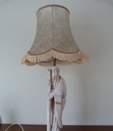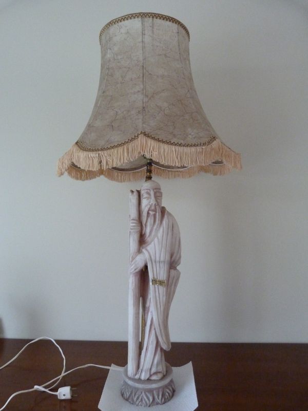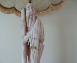 Lampe à poser en Albâtre, personnage vieux chinois, hauteur 55 cm, Abat jour 35 cm
