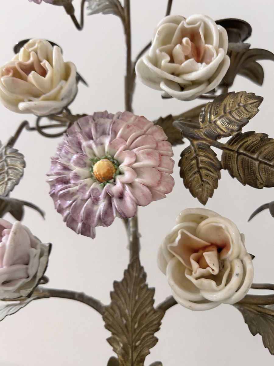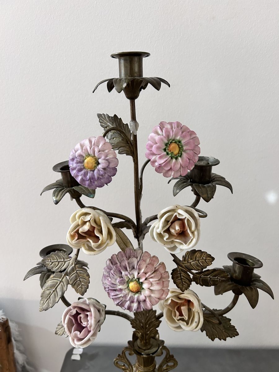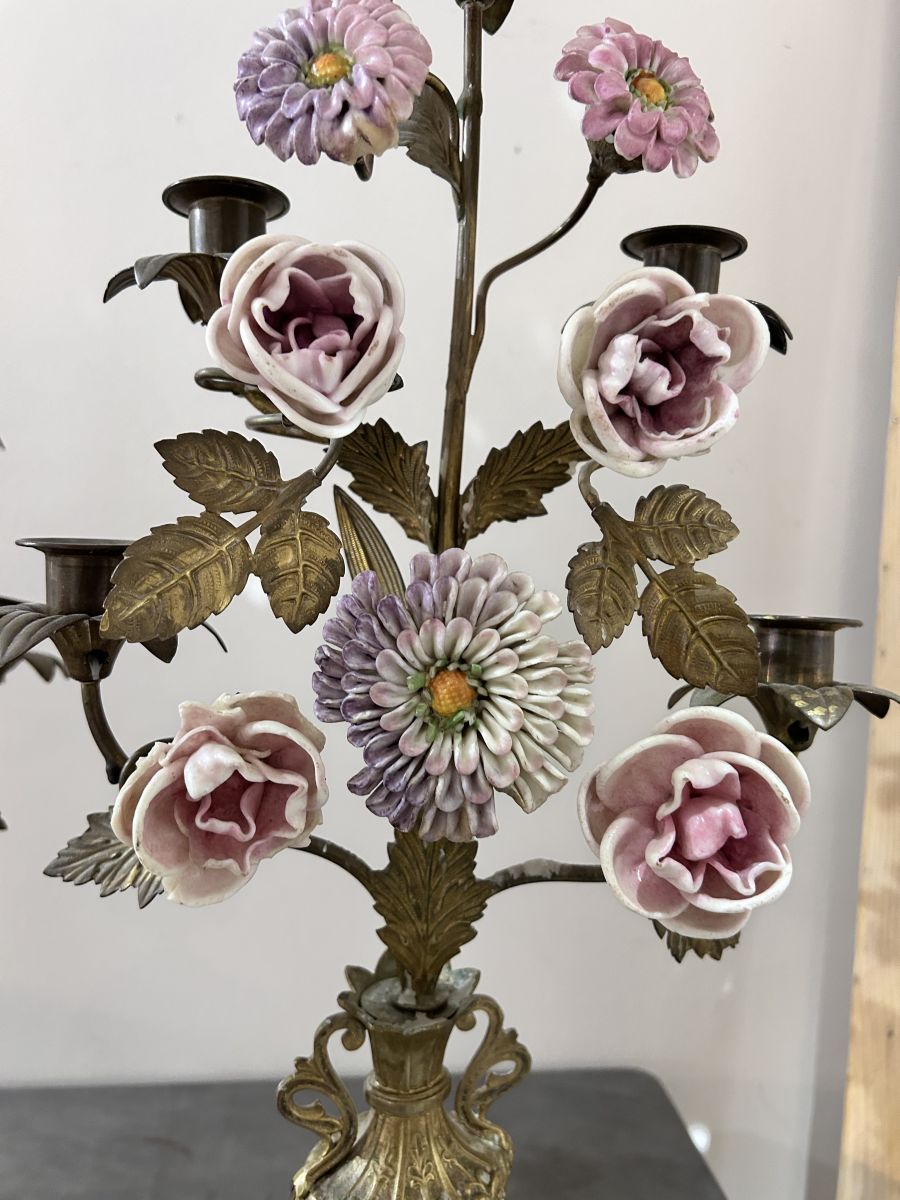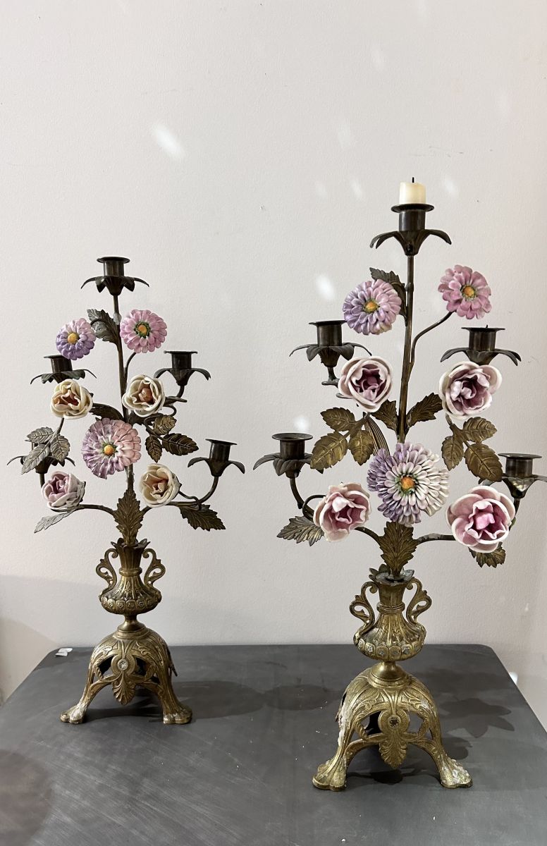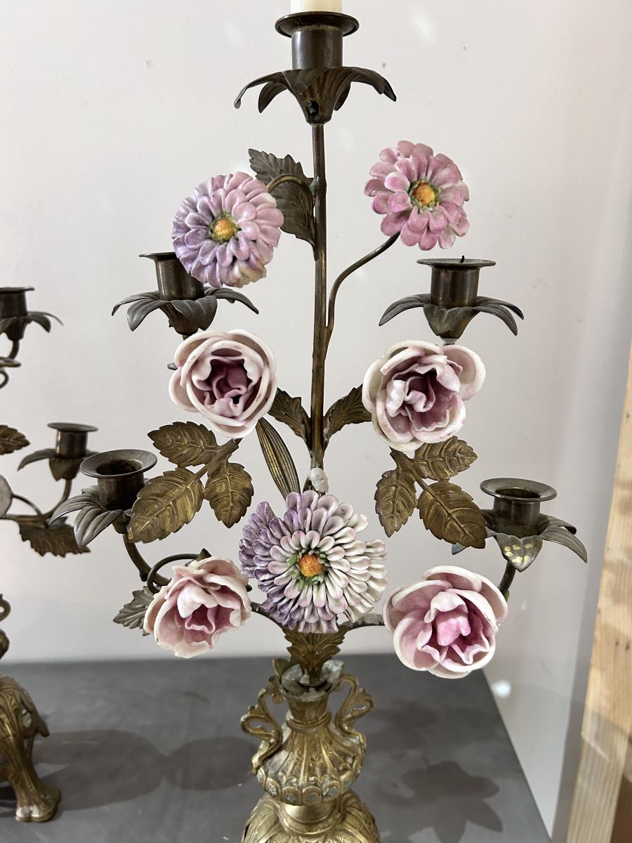 Bougeoirs d'église en laiton 5 feux et 7 fleurs. Quelques pétales de cassées.
