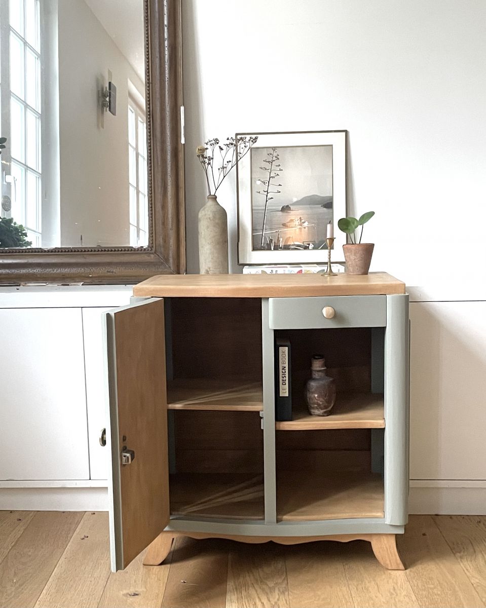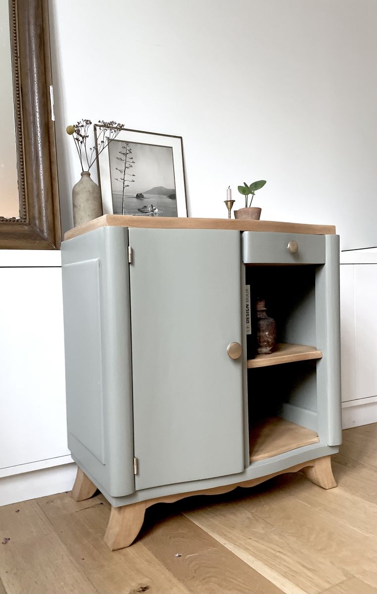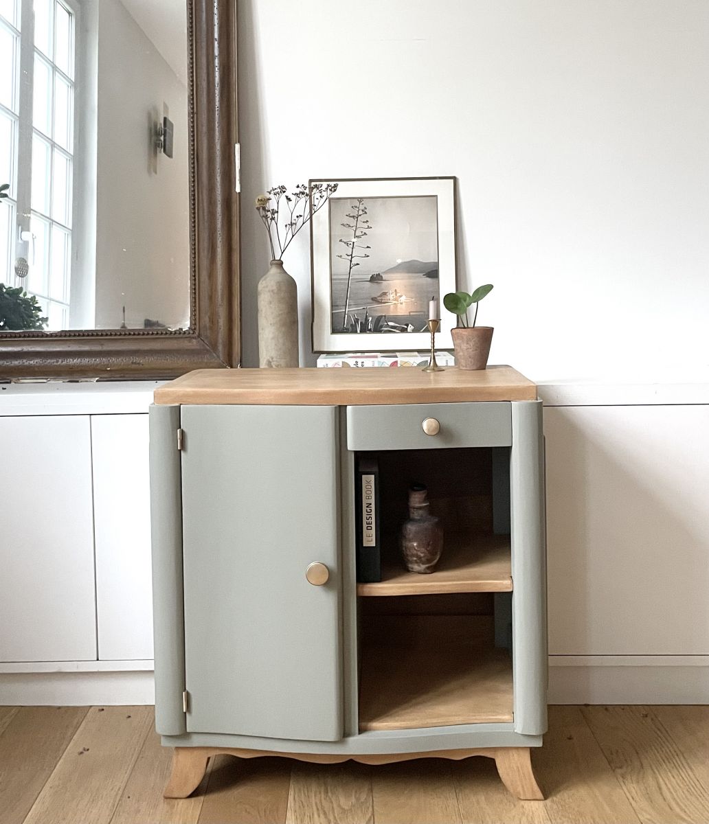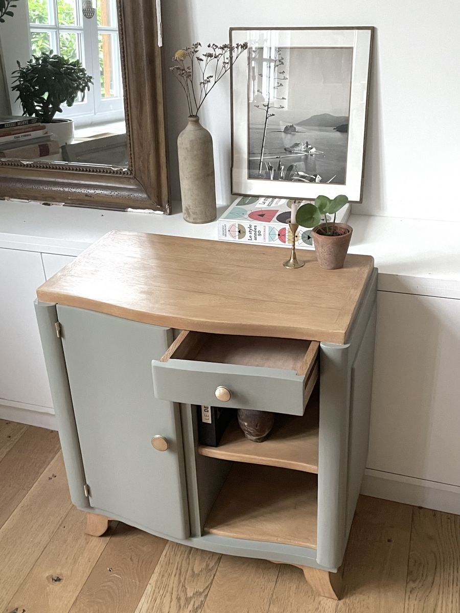 Élégant chevet ou meuble d’appoint des années 30 avec un beau piétement en bois.