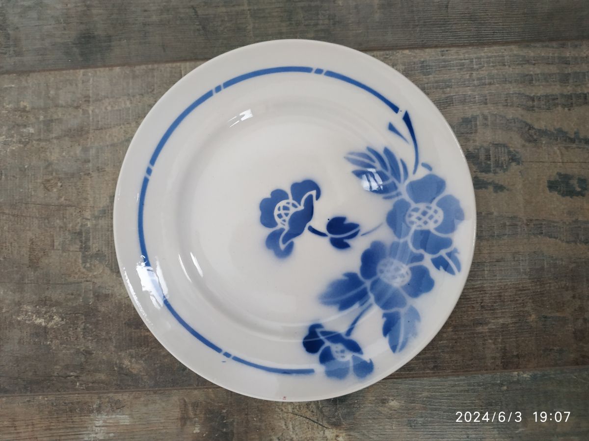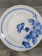 faïence Moulin des Loups blanche à décor fleuri bleu.