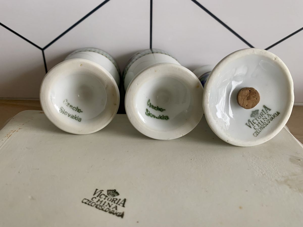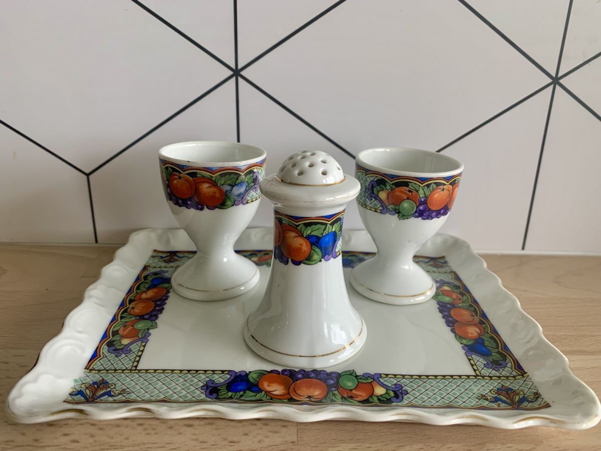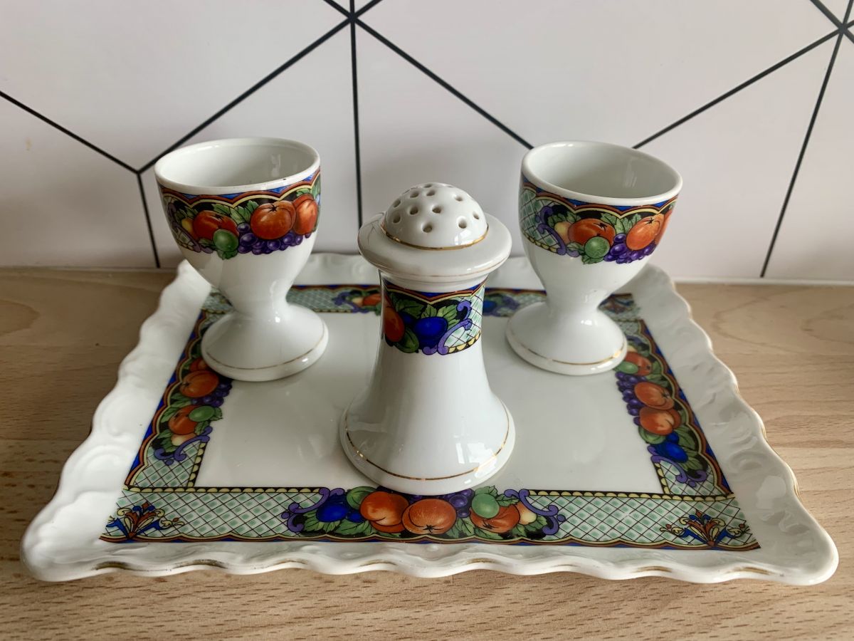 Ensemble coquetier vintage en porcelaine tchèque Victoria