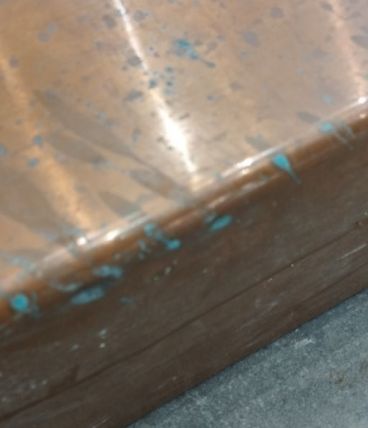 Traces "vert de gris" typiques de l'oxydation du cuivre.