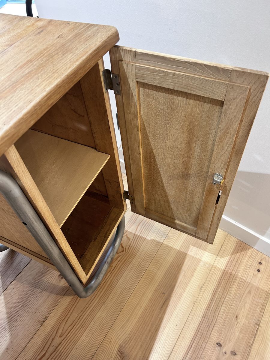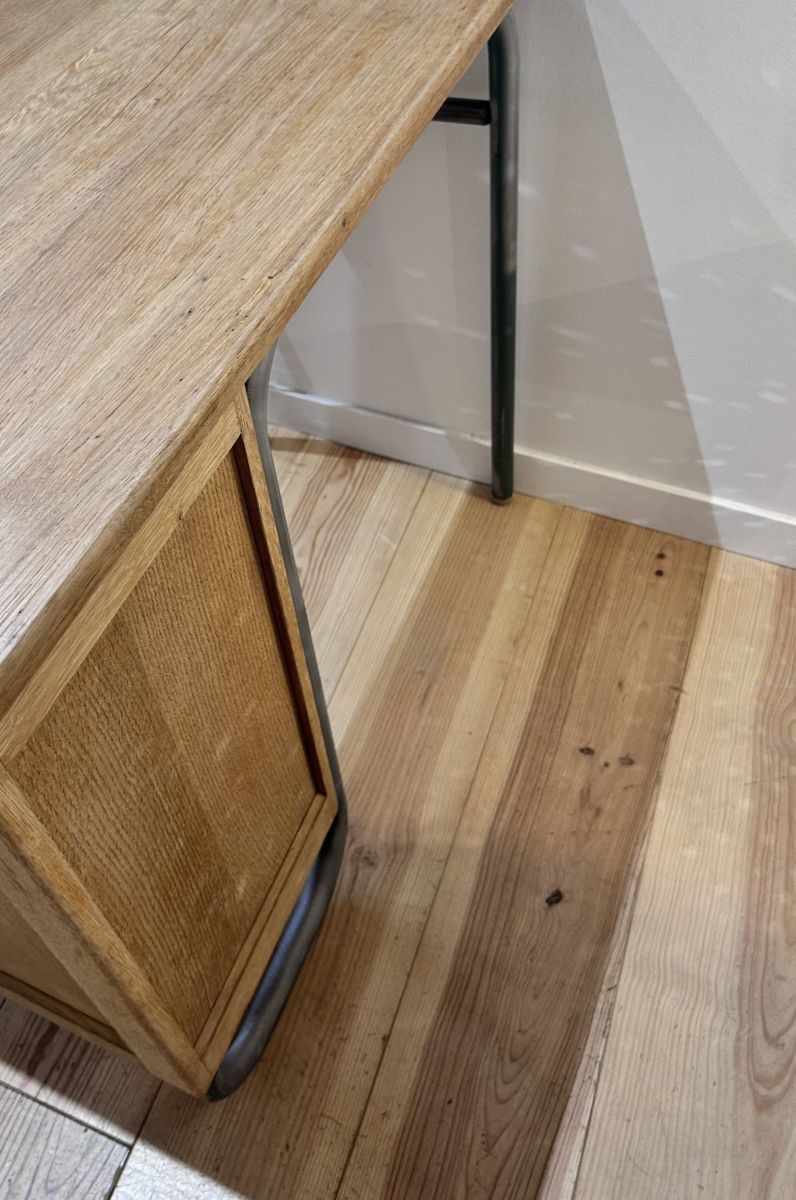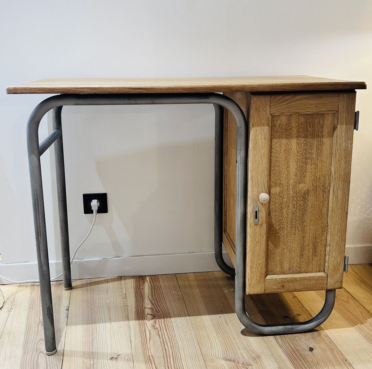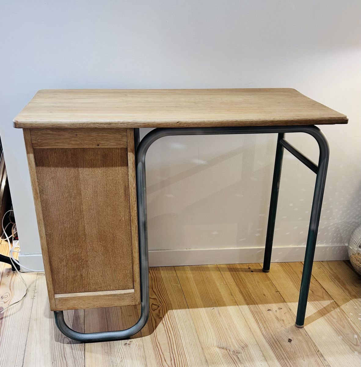 Bureau scolaire entièrement sablé et le plateau est vernis mat.