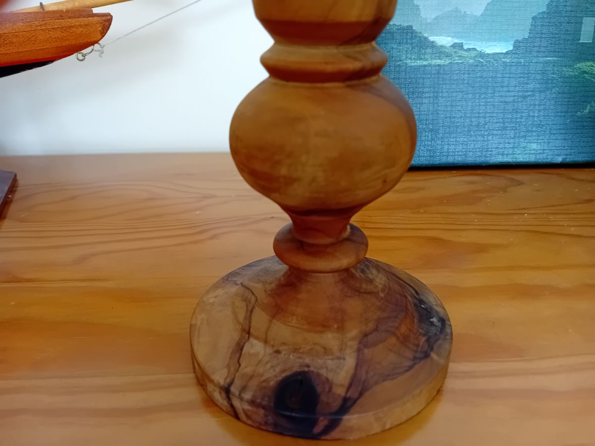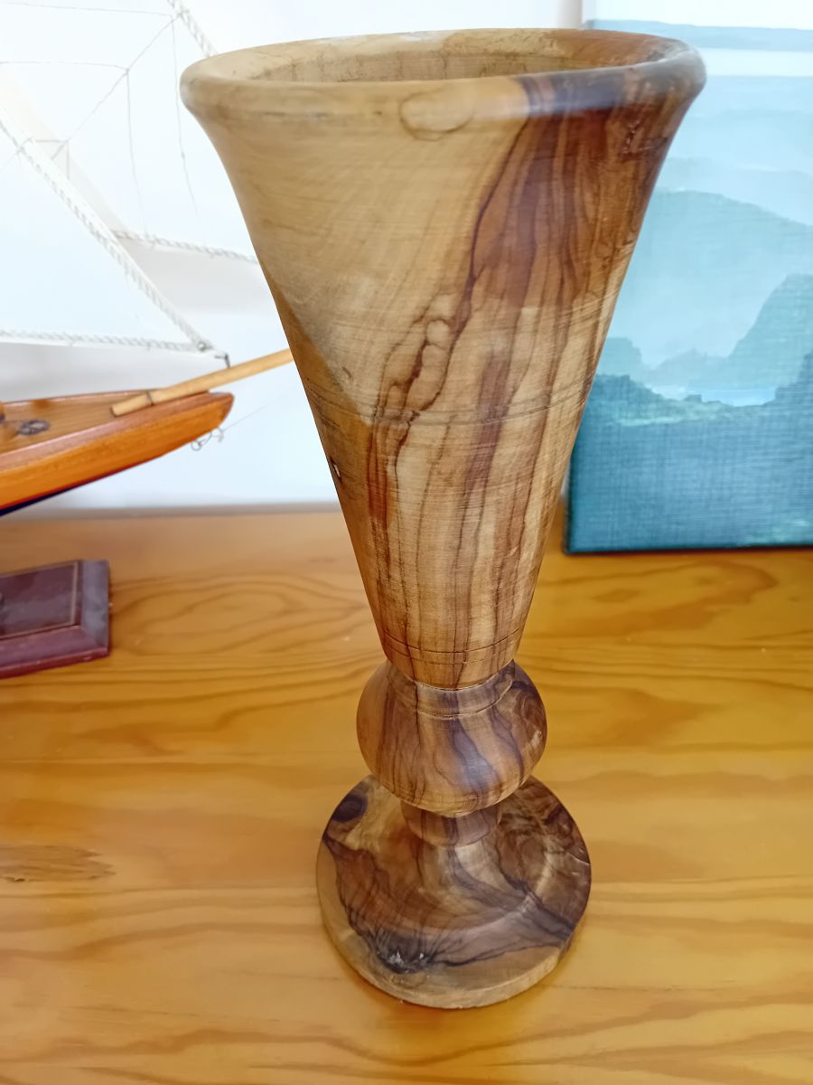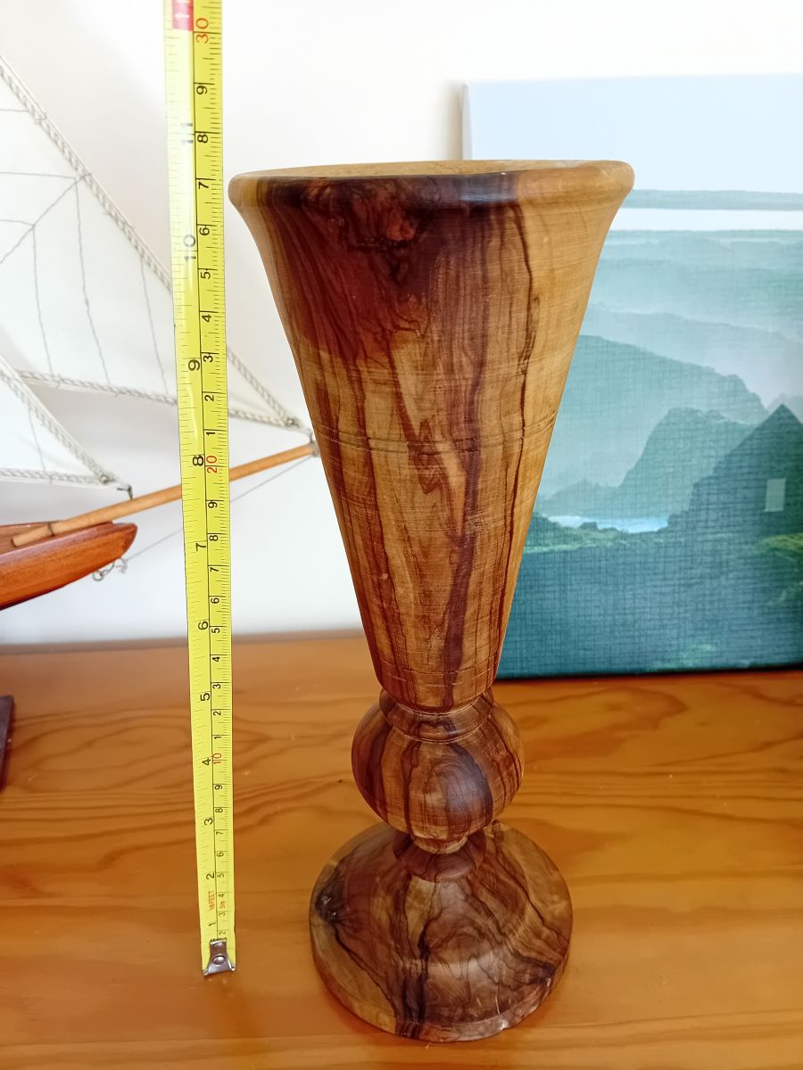 Superbe travail de bois d'olivier tourné. Dimensions:
