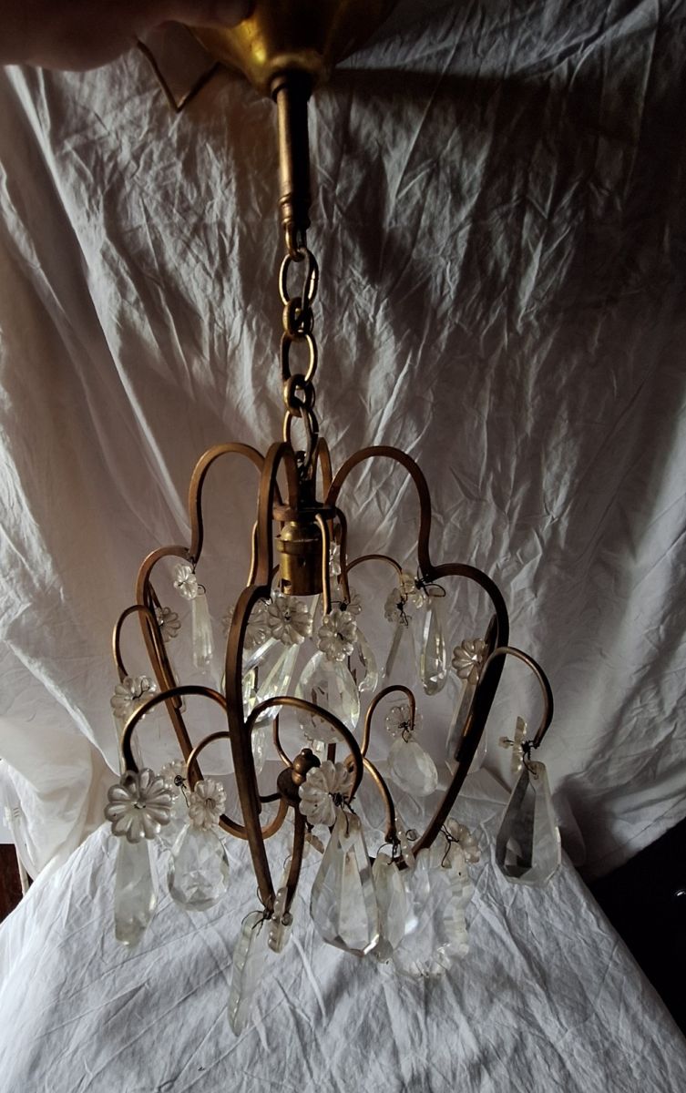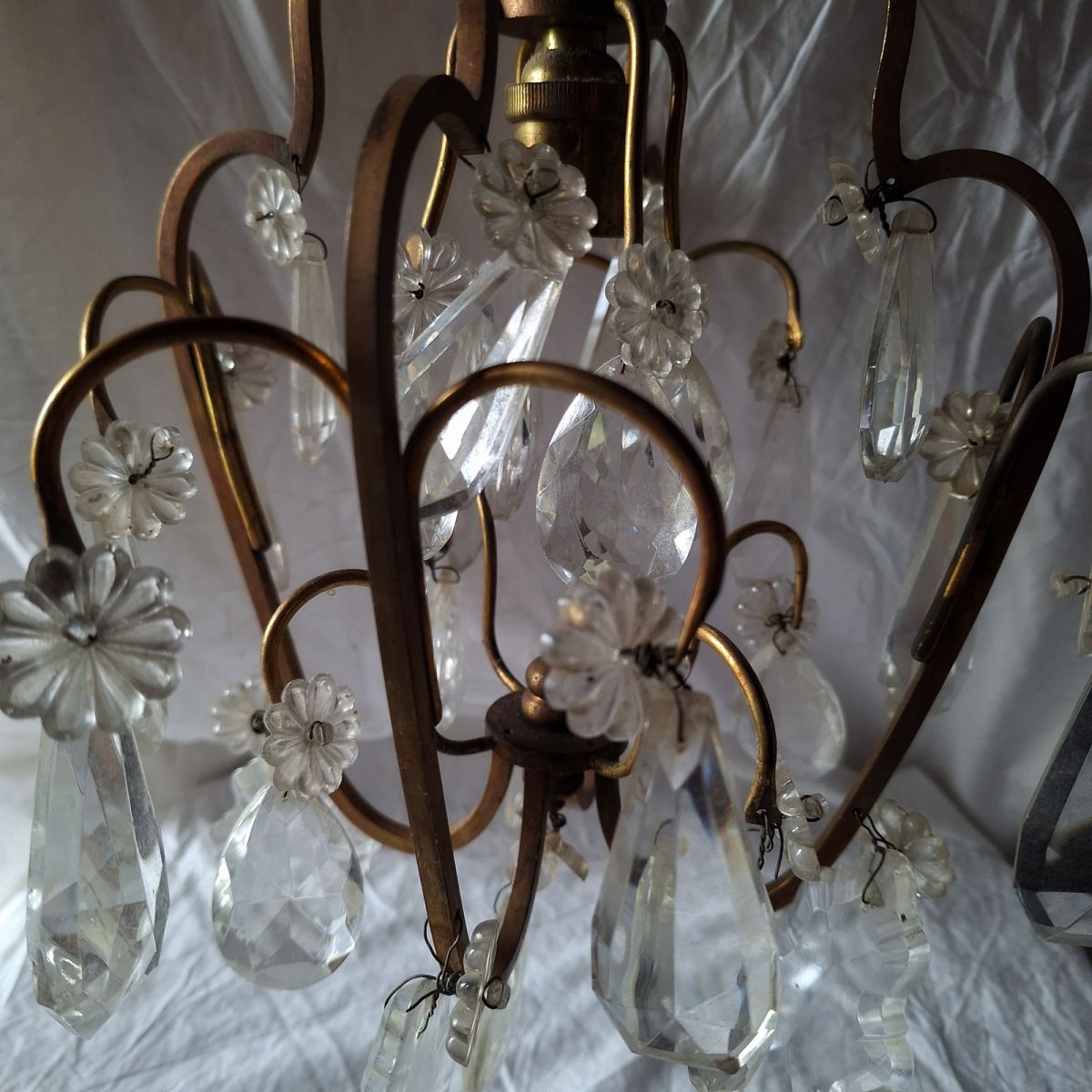 lustre cage bronze et pampilles