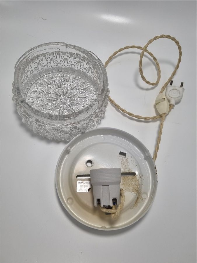 Luminaire vintage, proposé ici en lampe de chevet / lampe à poser, il peut également être utiliser en plafonnier ou en applique murale.