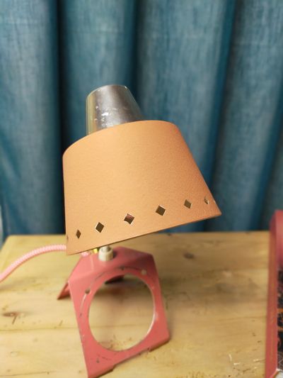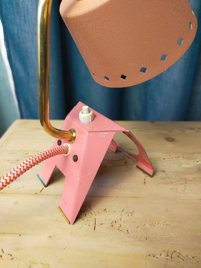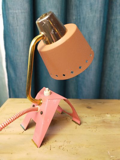 Voici une petite lampe de chevet directement venue des années 60’. Trahie par son abat-jour en métal perforé, elle provient très certainement de la fabrique Boréns à Borås en Suède. Cette lampe est vraiment très inspirante pour une chambre ou une pièce à vivre décorée dans un pur style vintage.