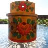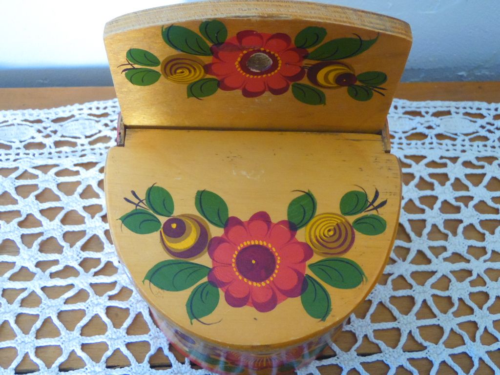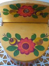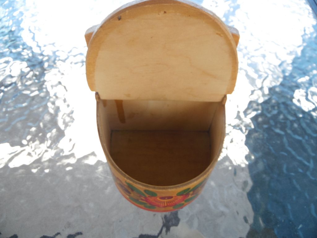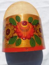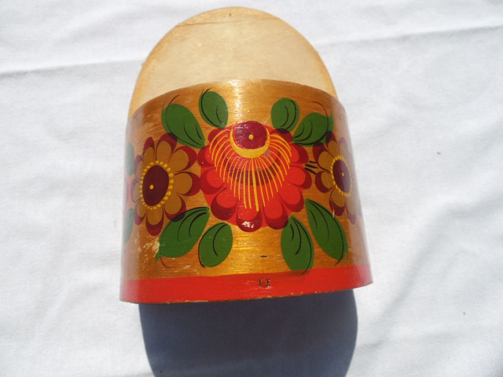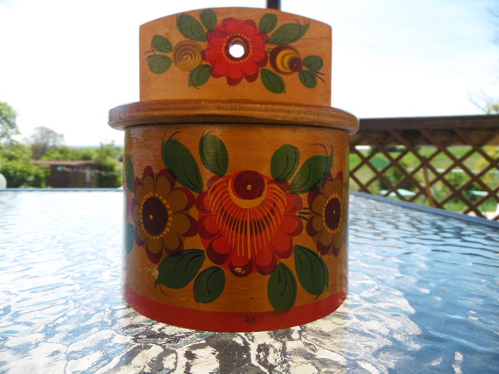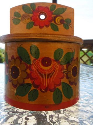 Magnifique boite a sel en bois blanc peint a la main selon la methode de Khokhloma