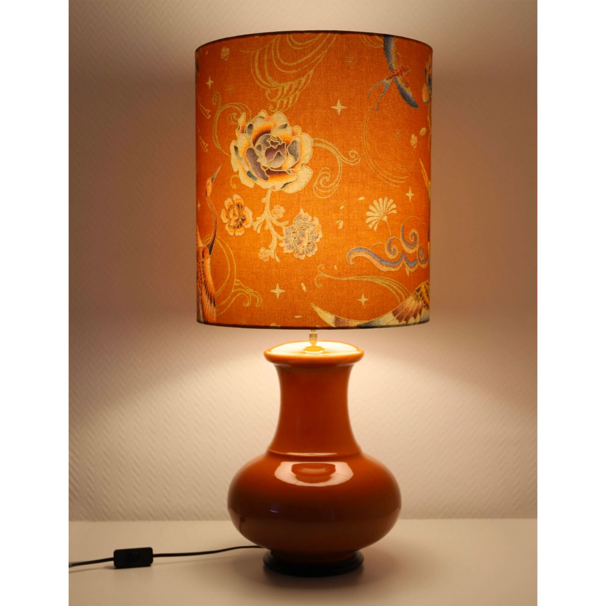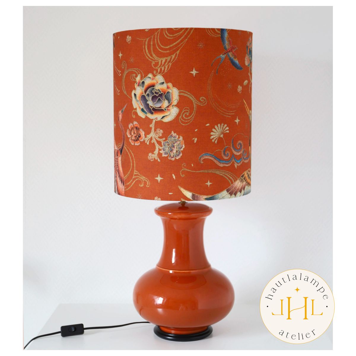 Grande lampe vintage pied en céramique couleur caramel, chinée en alsace et remis au goût du jour dans mon atelier strasbourgeois. Lampe à poser, pied en céramique. Joli teint "caramel". Abat-jour cylindrique neuf avec finition roulé. Tissu imprimé maison thevenon, coloris caramel. Elle est prévue pour fonctionner avec une ampoule e27. Cable électrique et douille révisés. Hauteur lampe avec abat-jour: 77 cm. Diamètre pied de lampe 28 cm. Hauteur pied de lampe: 44cm. Diamètre abat-jour: 35 cm. Hauteur abat-jour: 40 cm. ???????? il s'agit d'un produit de seconde main pouvant laisser apparaitre des traces liées à son utilisation et au temps✨. Je prends soin de chaque petit détail pour réveiller la beauté de toutes mes lampes!.