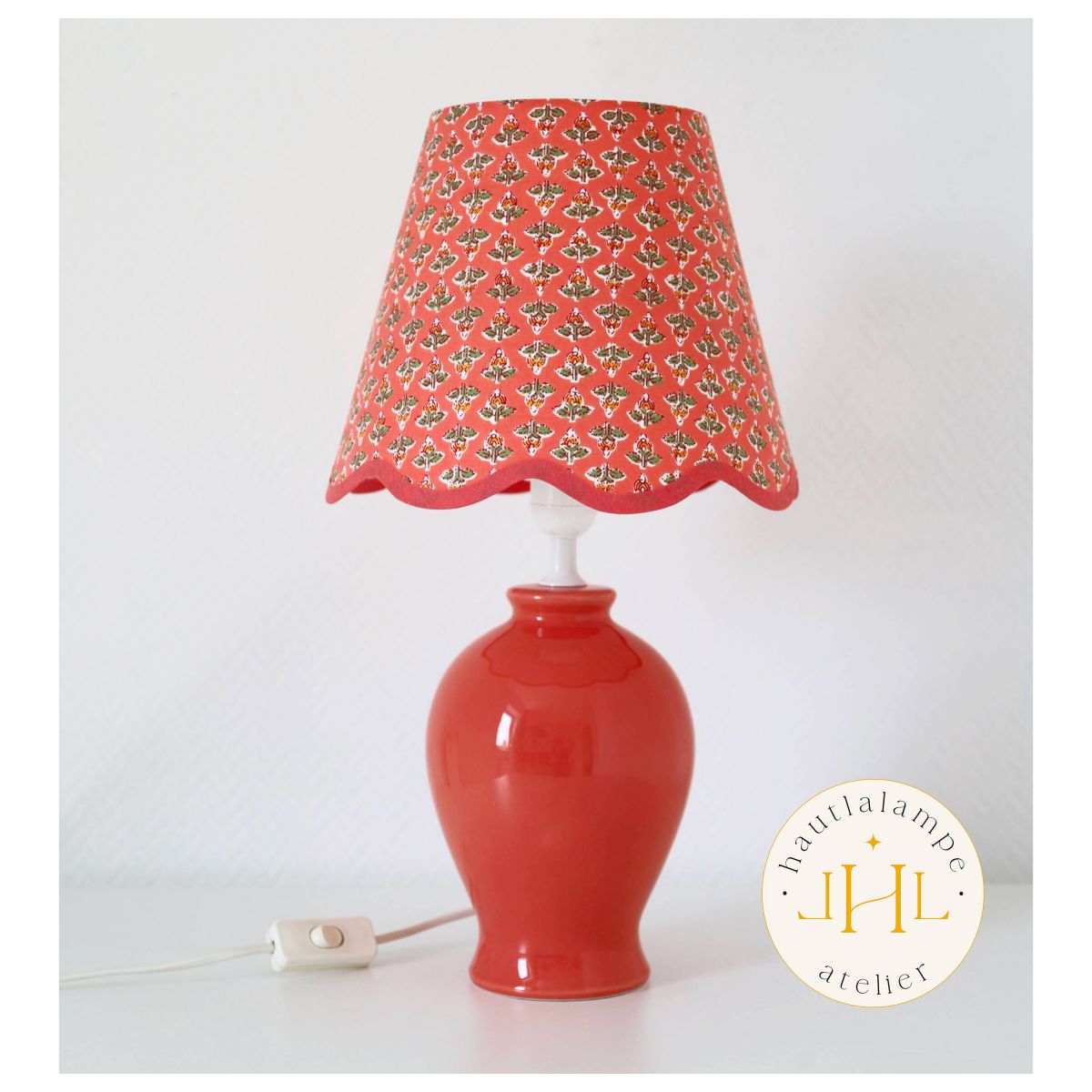 Lampe seconde main complètement rénovée, chinée en alsace et remis au goût du jour dans mon atelier strasbourgeois. Abat-jour fait main coton imprimé finition "scalloped". Lampe à poser avec pied en céramique. Joli teint "rose corail". Abat-jour forme "scalloped" imprimé motif "petites fleurs" et finition roulée. Système d'abat-jour anglais "shade carrier", très pratique pour le démontage de l'abat-jour et le changement de l'ampoule. Elle est prévue pour fonctionner avec une ampoule e27. Cable électrique et douille révisés. Hauteur lampe avec abat-jour: 49, 5 cm. Hauteur pied de lampe: 27 cm. Diamètre pied de lampe 15 cm. Diamètre abat-jour bas 26 cm. Diamètre abat-jour haut 15 cm. Hauteur abat-jour: 22 cm. ???????? il s'agit d'un produit de seconde main pouvant laisser apparaitre des traces liées à son utilisation et au temps✨. Je prends soin de chaque petit détail pour réveiller la beauté de toutes mes lampes!.