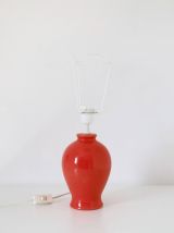 Lampe avec pied en céramique rose corail et abat-jour "scall