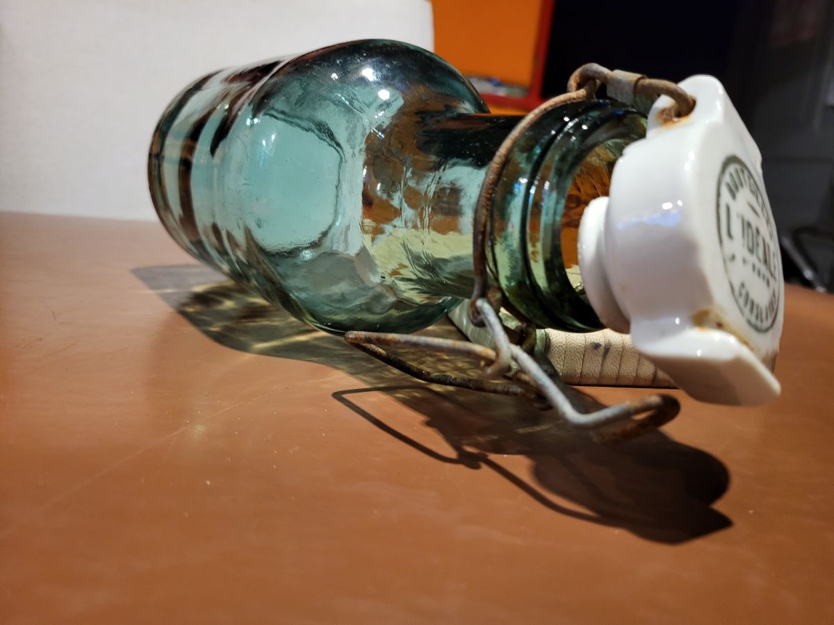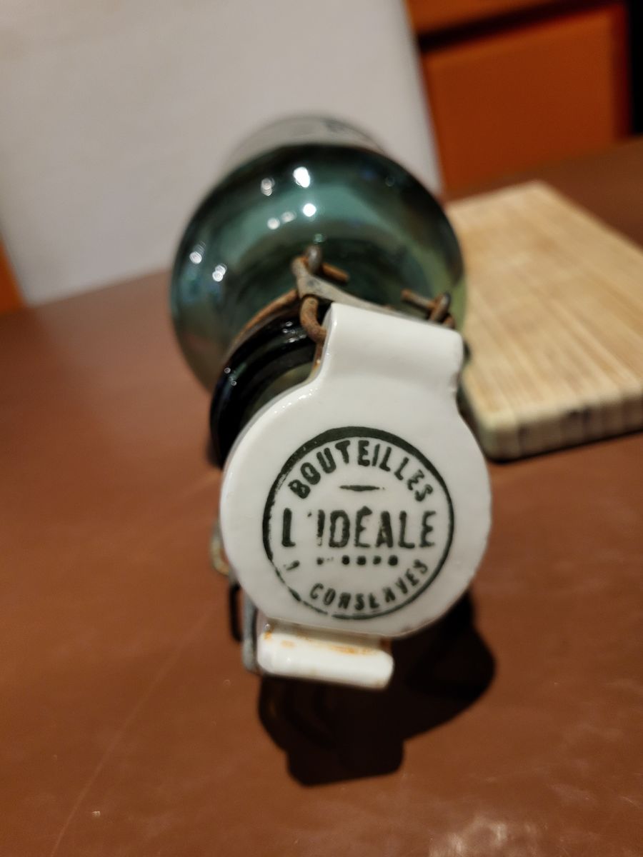 Bouteille en verre "L ideale" vintage bouchon porcelaine