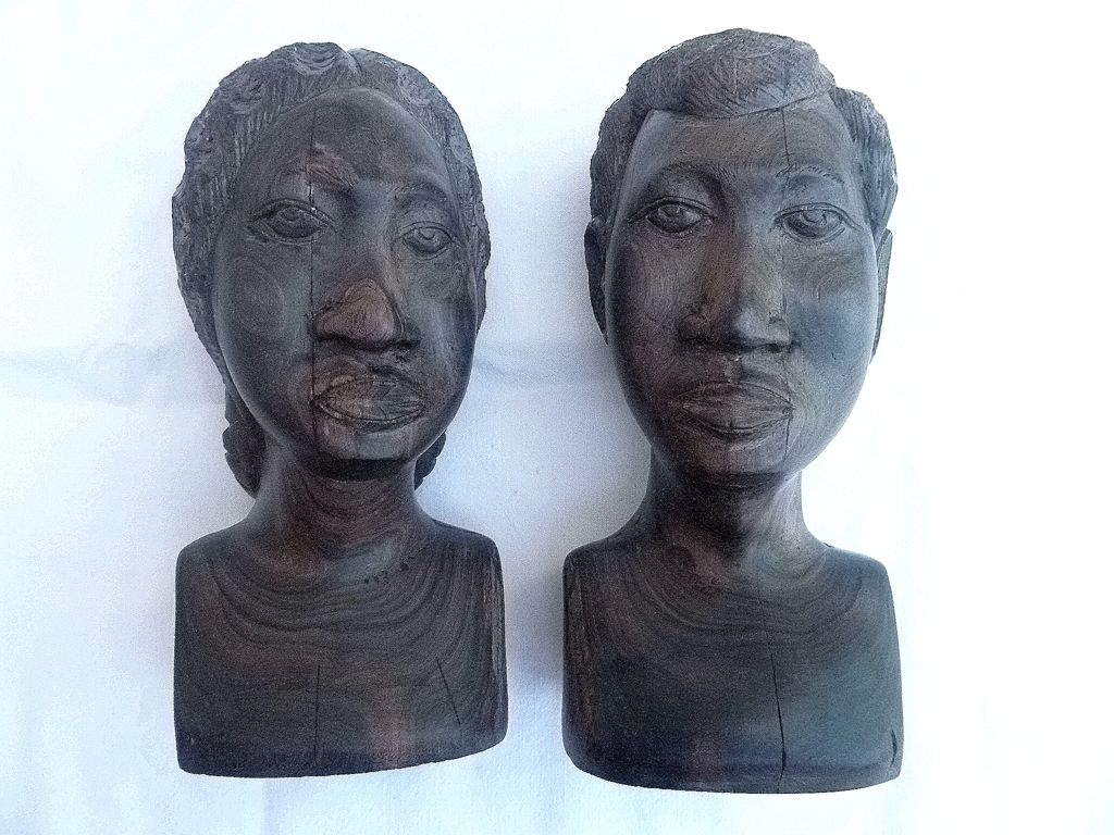 Bustes africains "Couple" ébène, vintage