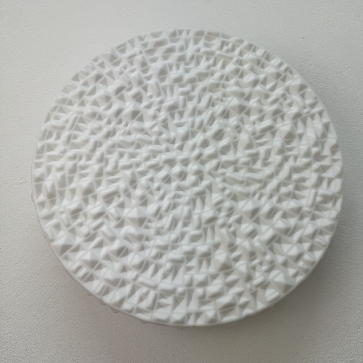 ANCIENNE APPLIQUE RONDE EN OPALINE TEXTUREE VINTAGE