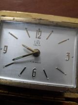 Réveil de voyage pliable, dans son étui en cuir noir. Années 50/60. Marque suisse UTI Delta, 7 jewels.