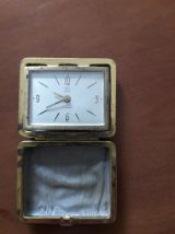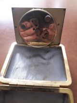En état de marche bien qu'il présente des marques du temps. Seul le fermoir n'accroche plus. Dimensions : 6,5cmx8cm (plié) et 6,5 cm en hauteur quand il est déplié et posé.