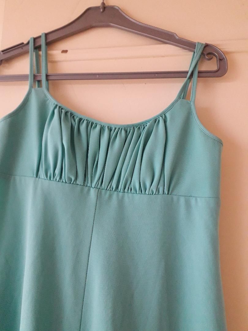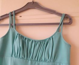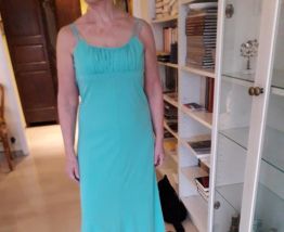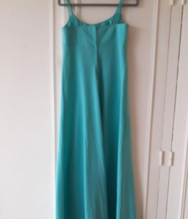 Jolie robe longue turquoise, bretelles spaghettis doubles.