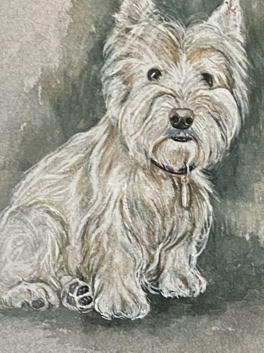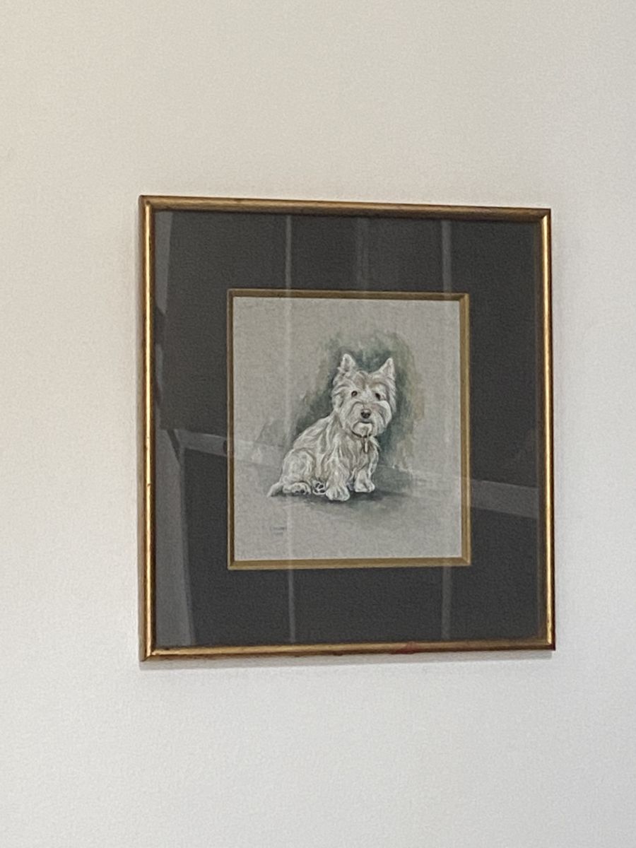 Peinture westie cadre doré larg 26,5 ht 28 epaisseur 2 cm