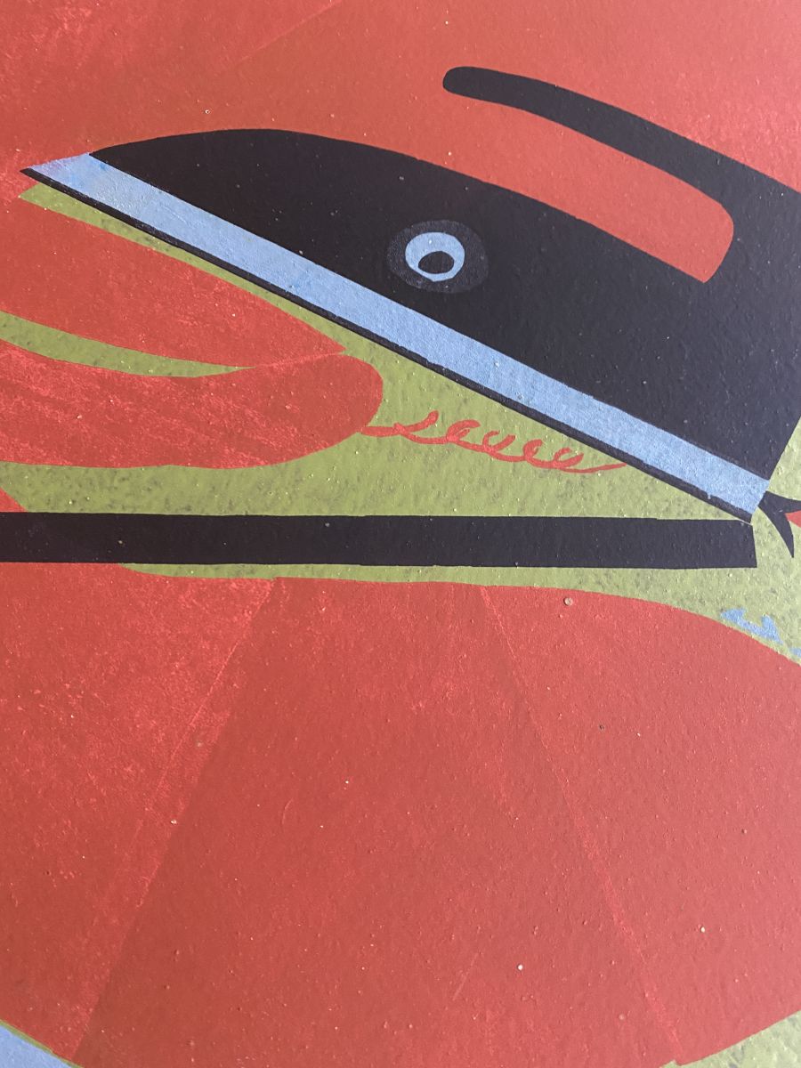 Ancienne plaque d’usine en tôle peinte au pochoir. Superbes couleurs.