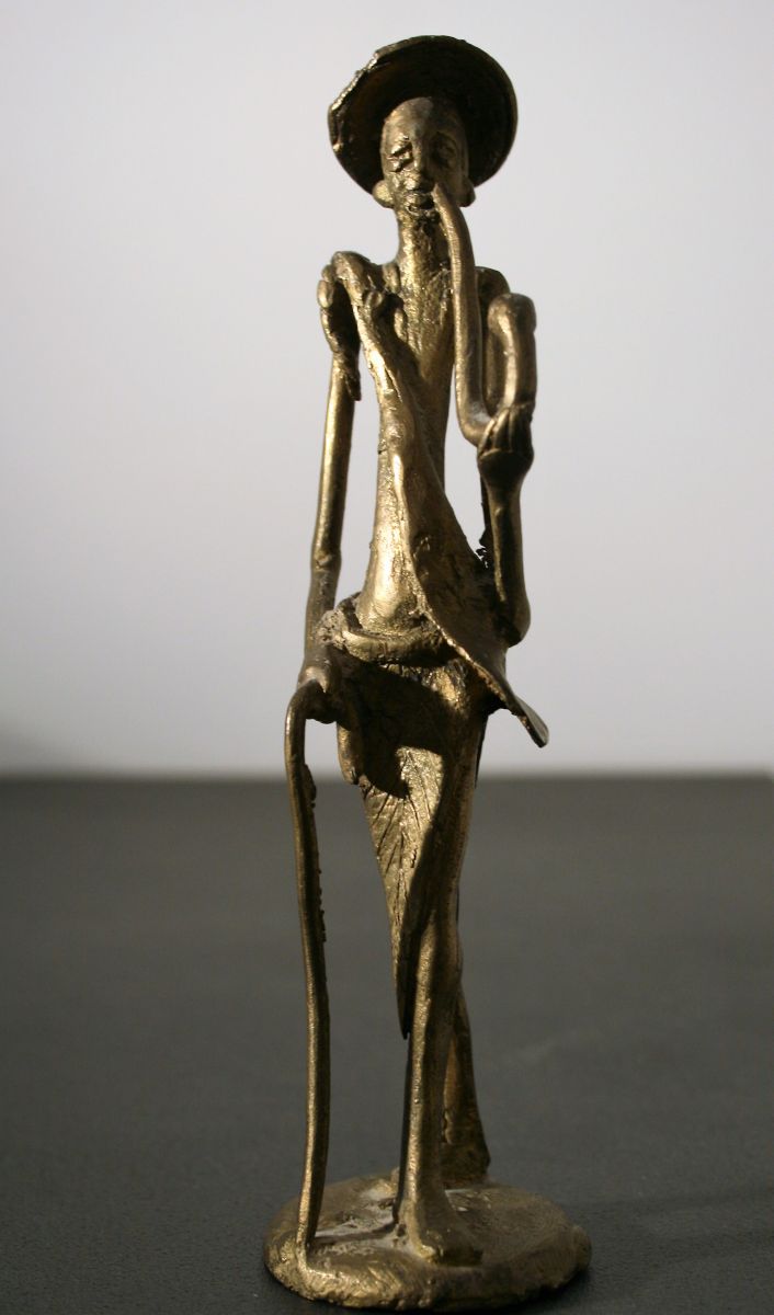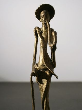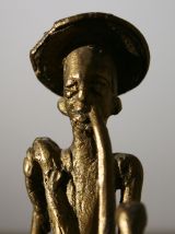 Statuette Art Africain, bronze " Le Vieil Homme à la Pipe " Pays des Dogons Mali