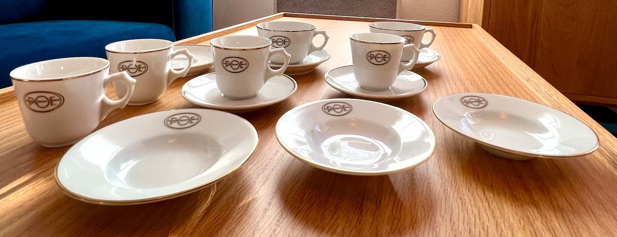 D'autres pièces en porcelaine du POE sont en vente : 2 tasses à thé et 4 tasses à café.